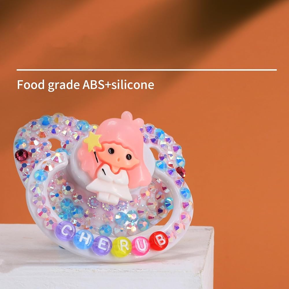 Indulge in a sense of playfulness and comfort with our adult-sized pacifier. Our unique and playful design, featuring a charming shape and sparkling gemstones, adds a touch of whimsy to your day and makes a statement. But our pacifier isn't just a fun accessory - it's also a soothing tool for when you're feeling stressed or anxious. The gentle sucking motion can help calm your nerves and ease your mind, making it a great addition to your self-care routine. You can trust that our pacifier is made from high-quality, non-toxic materials, ensuring your health and safety. It's also easy to use and can be quickly cleaned with soap and water. Plus, the lightweight and compact design makes it easy to carry with you wherever you go. our adult-sized pacifier is the perfect choice to express your inner child and enjoy a sense of comfort and security.