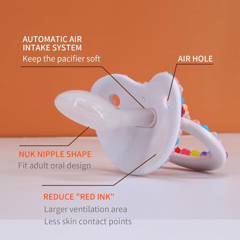 Comfortable and soothing: The pacifiers are designed to provide a comfortable and soothing experience for adults who struggle with stress or anxiety. They can help you relax and unwind after a long day.