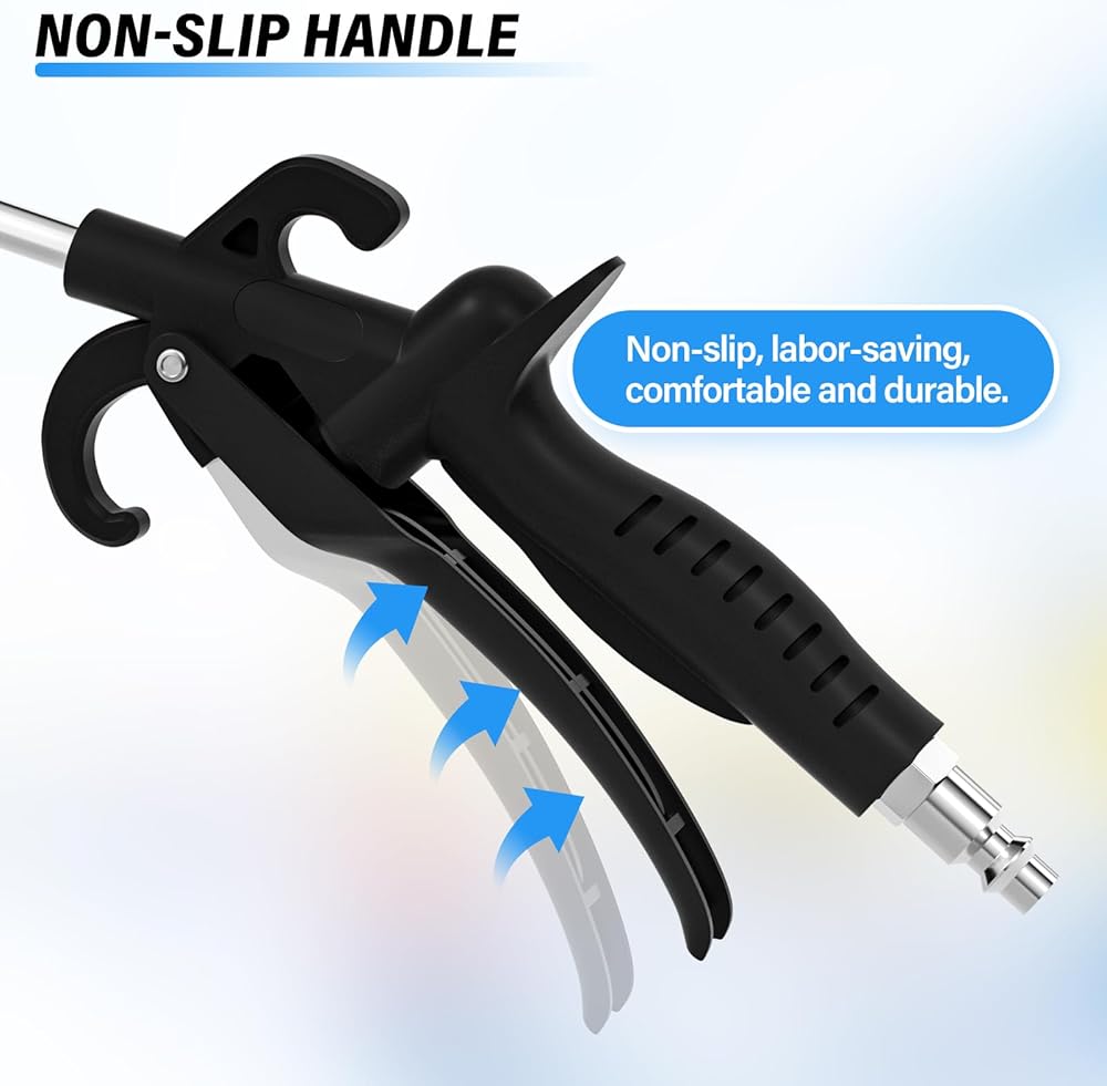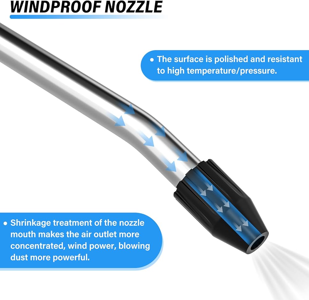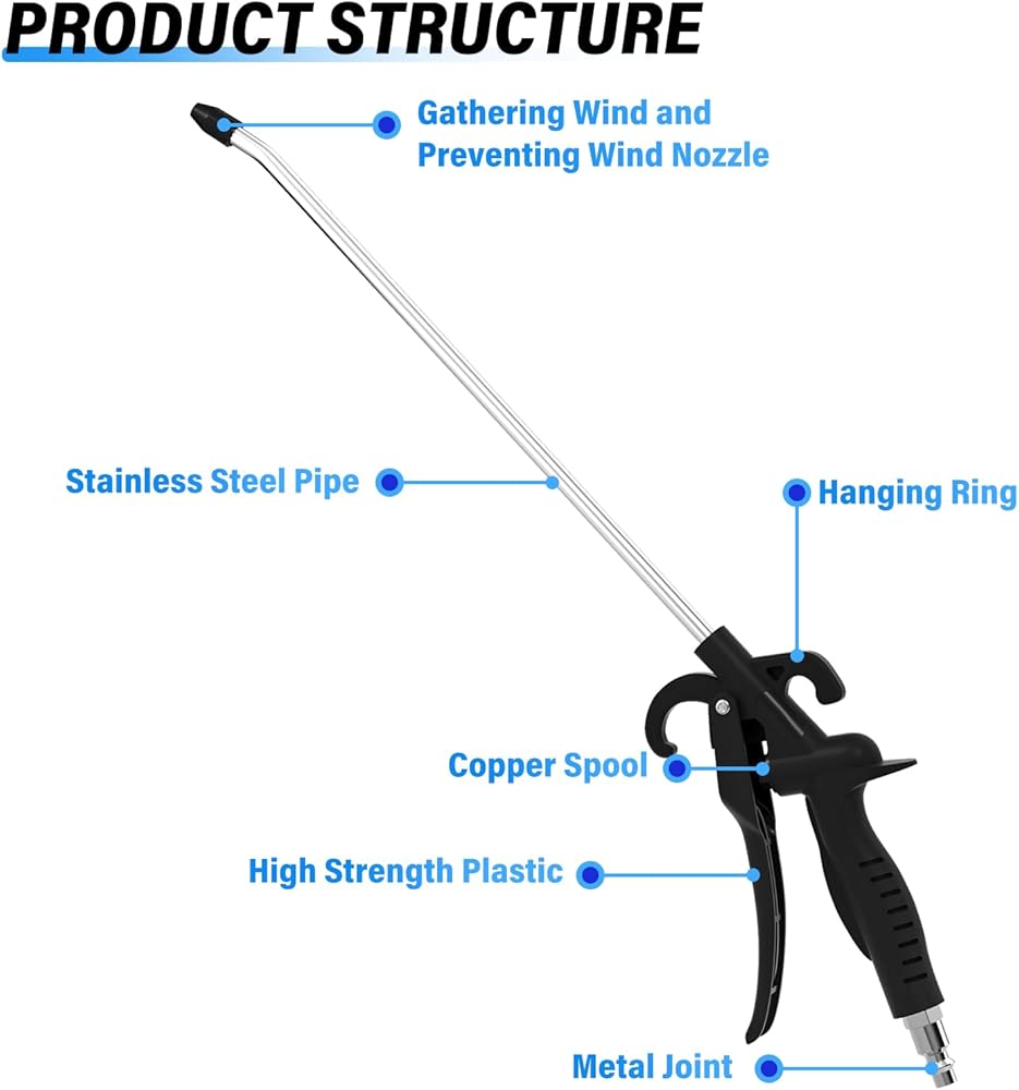 ✔High-Strength Stainless Steel Pipe, Not Easy to Break, Not Easy to Rust, Longer Life. ✔The Wind Power is More Concentrated, The Surface is Polished, High Temperature/High Pressure Resistant, Which can Effectively Protect the Workpiece more Safe and Reliable. ✔Mechanical handle, pressing comfortable, strong rebound.