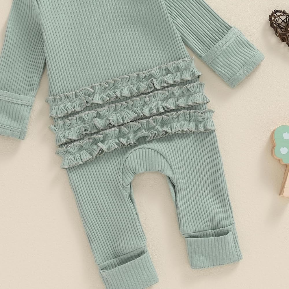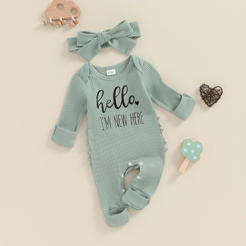 Baby Girls Autumn Casual Jumpsuit Long Sleeve Crew Neck Letter Print Romper with Headband
