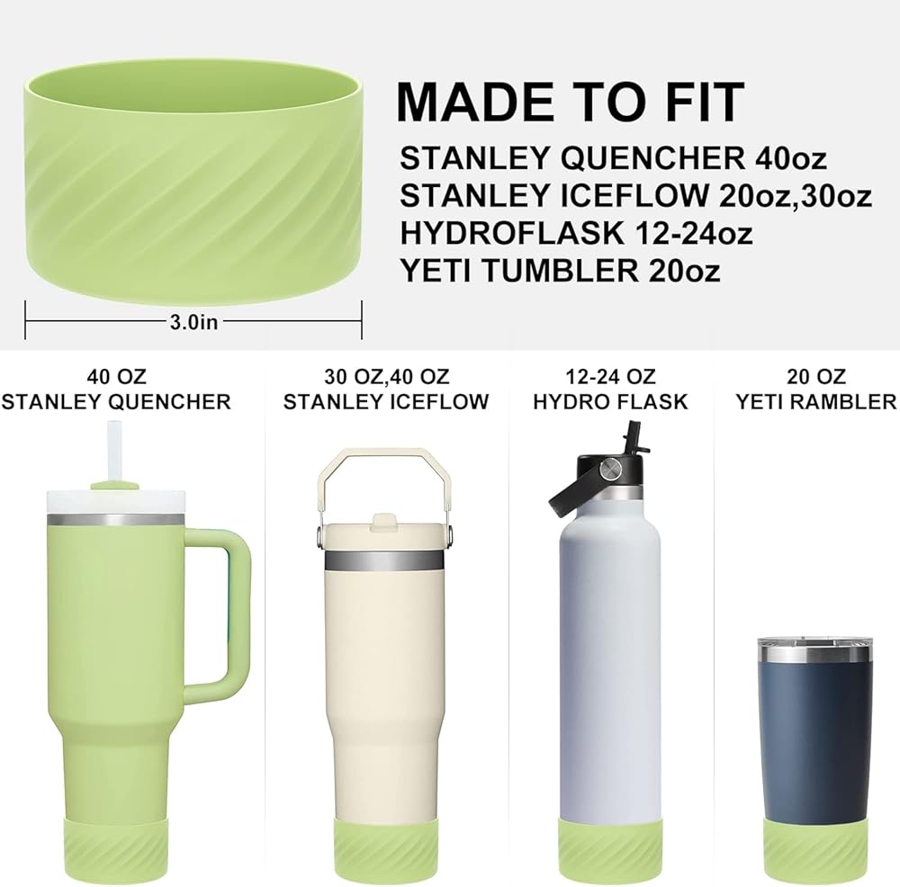 ★WIDE COMPATIBILITY — It fits tumblers with a bottom diameter of 2.8-3 inches. Note: this water Bottle Boot is also suitable for Yeti Rambler 20 oz and Hydroflask 12-24 oz water bottles.