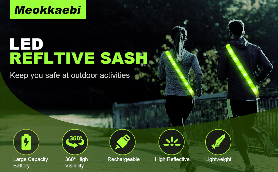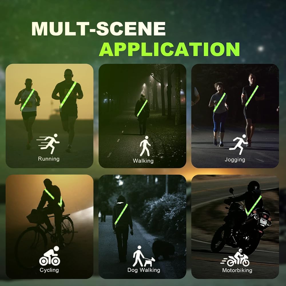 【360° High Visibility】-This reflective sash has three different light modes, with the blinking mode being particularly eye-catching. Its large reflective surface and bright LED light design offer 360-degree reflectivity and visibility, making nighttime walks and other activities safer.