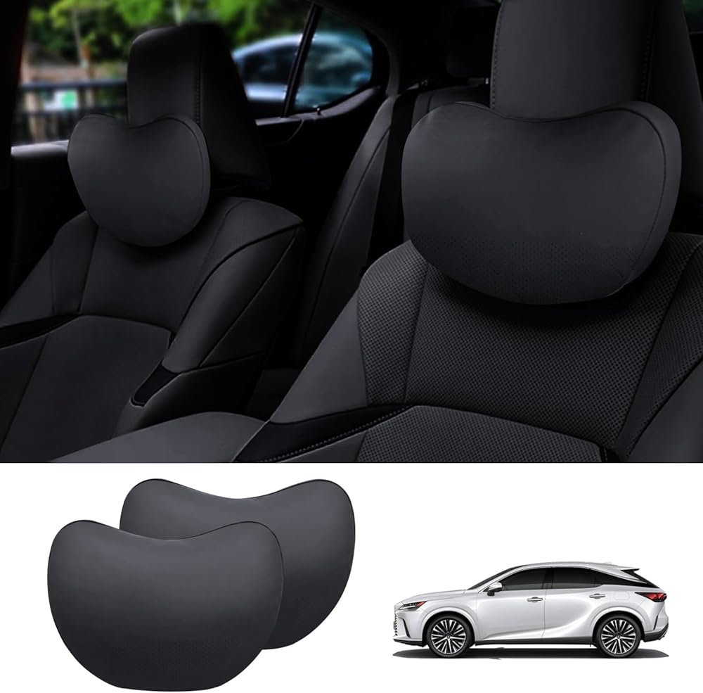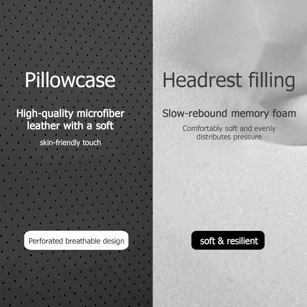 Luxury Nappa Leather Headrest Pillows,Softness Car Headrest Pillow with Adjustable Strap, Breathable Removable Cover & Ergonomic Design Compatible for All Trucks,SUV and Cars