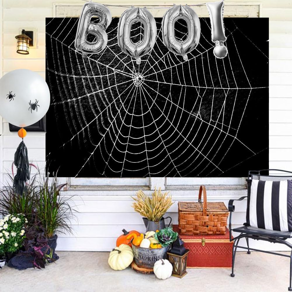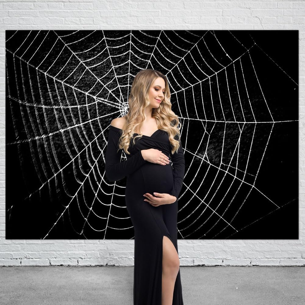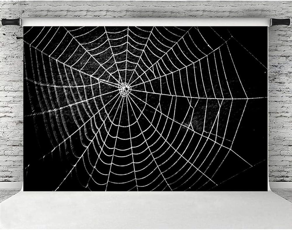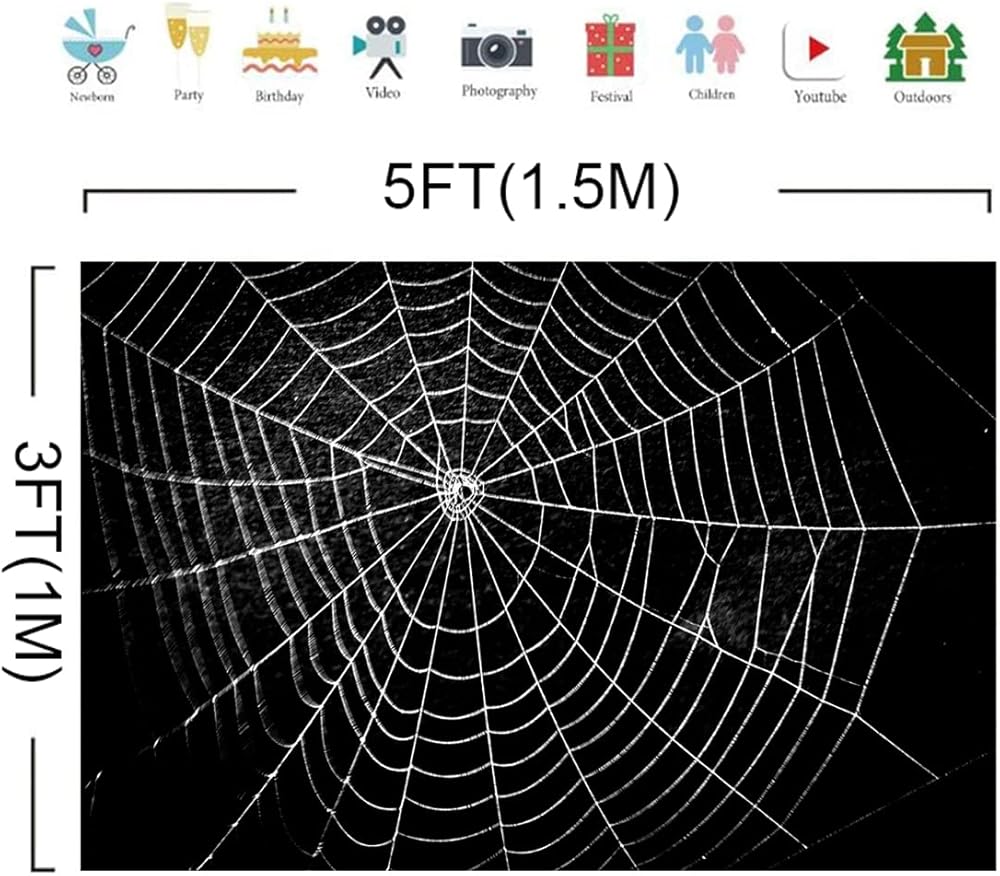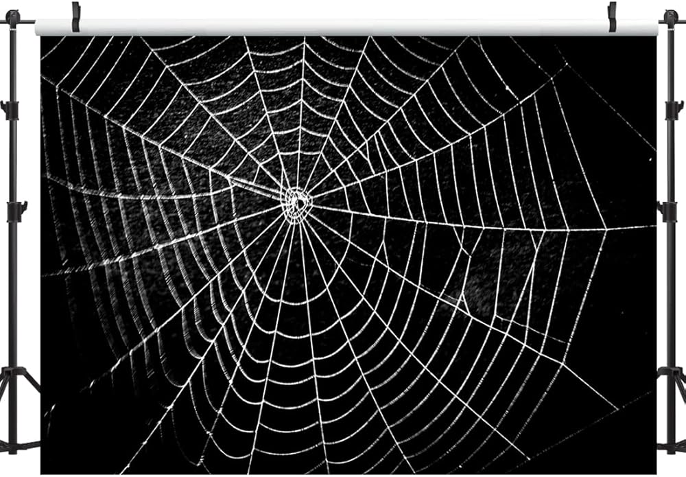 Lofaris Spider Web Photography Backdrop Pure Black for Children Kids Halloween Night Horror Themed Party Decor Black Wall Background Cake Table Banner for Portrait Photoshoot Booth Props 5x3ft