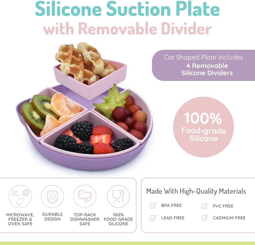 REMOVABLE DIVIDERS: Use with or without 4 Removable silicone dividers. This silicone suction plate is fully customizable and can be used with or without dividers! Customize the plate to fit your child's needs.