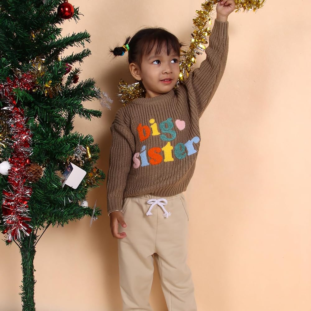 ❄Material: Toddler baby girl knit sweater is made of knitted cotton, soft and stretchy big sister embroidery sweater, lightweight, comfortable and warm to wear in fall winter. Big sister outfit, perfect growth gift for your baby girls.