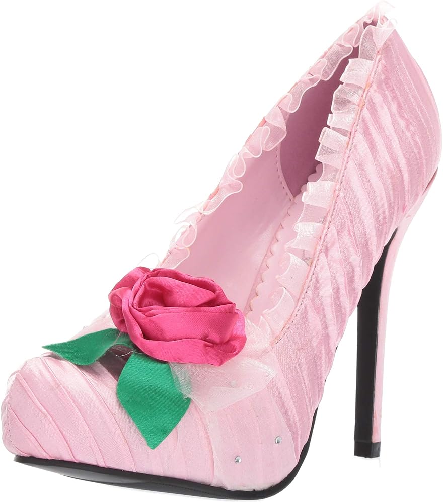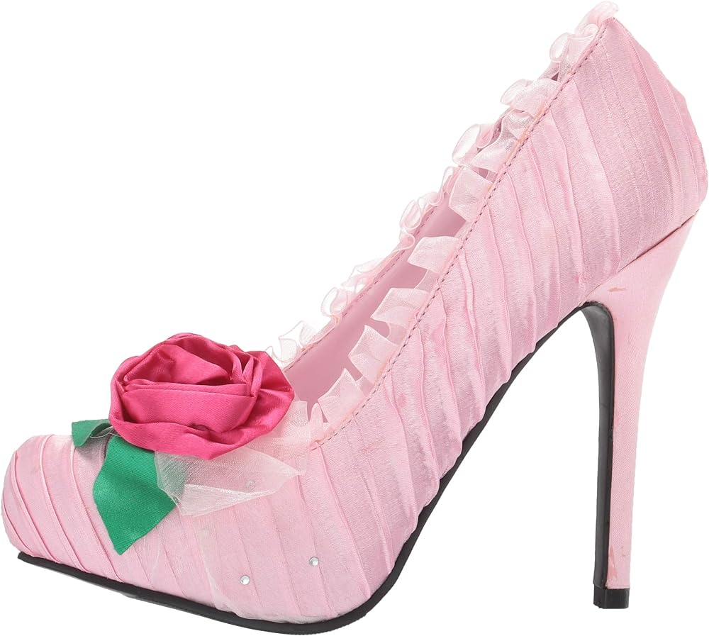 5" Satin Pump With Flower And Rhinestone Decor. Women