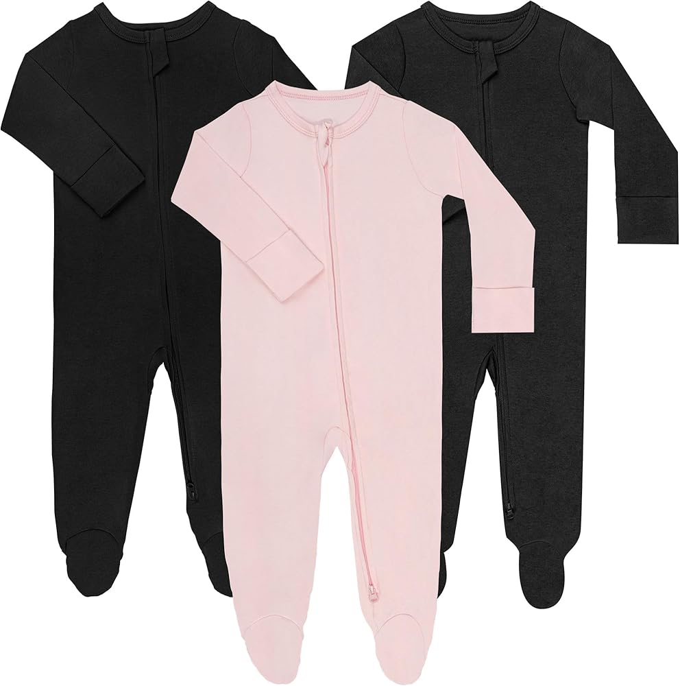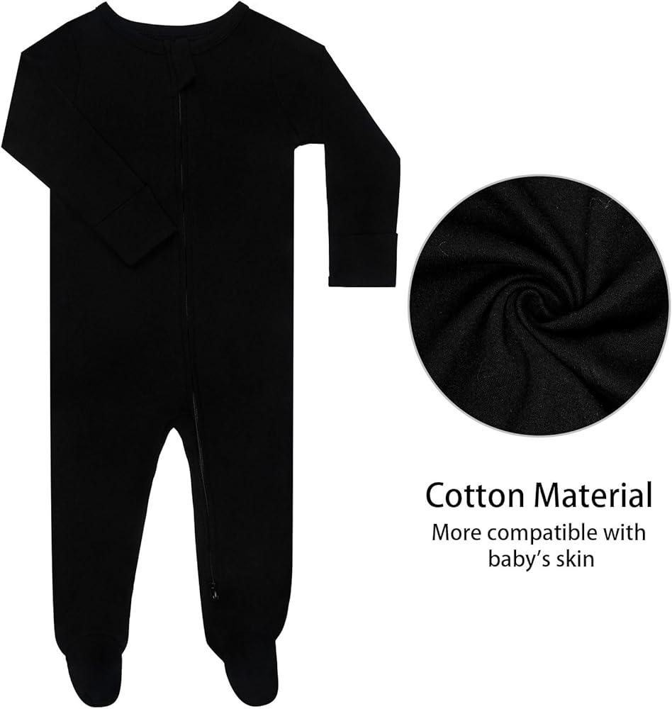 GUISBY Long Sleeve Baby Footed Pajamas with Mittens Cotton Sleepers with Zipper 3-Pack