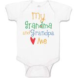 Perfect for someone who is looking for family baby bodysuit, new baby baby clothes, grandpa baby shirt, grandma baby birthday shirt, love infant bodysuit, gifts from grandparents baby outfits, grandson gifts baby playwear, gifts for grandson custom baby gifts, . The design text reads: my grandpa and grandma loves me