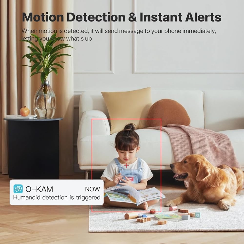 【Smart Motion Detection & Real-time Alerts】Indoor cameras for home security will quickly send alert notifications to your smartphone when motion is detected, and automatically track human's movement in the camera's field of view