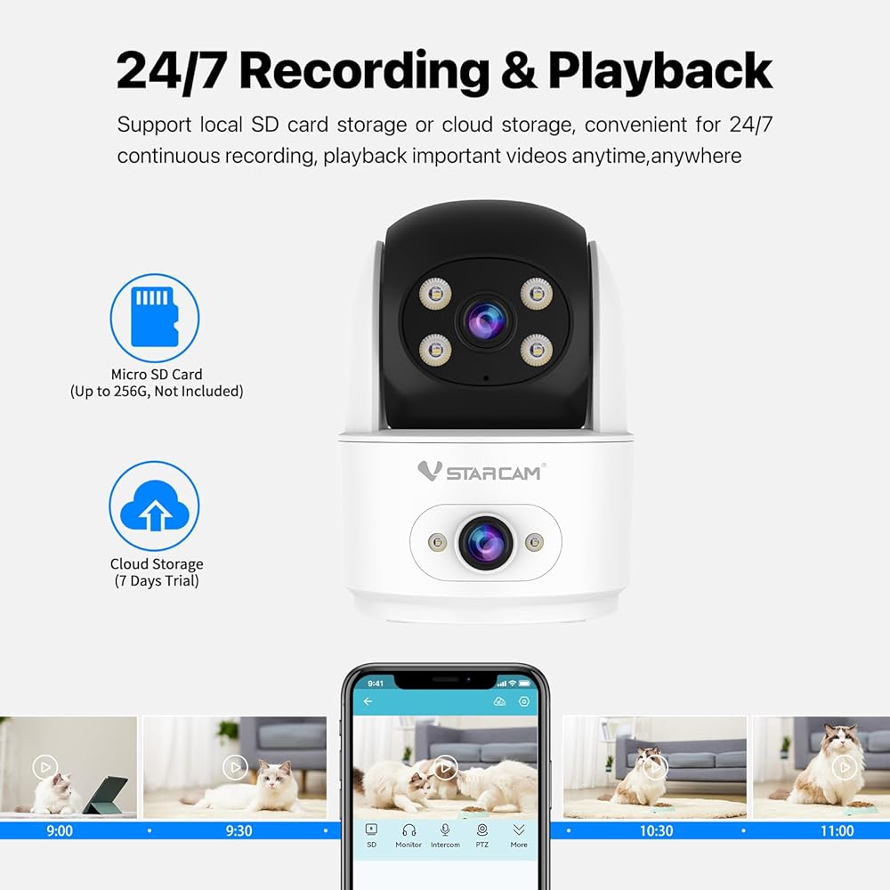 VSTARCAM Dual Camera,Indoor Security Cameras,Home Camera Indoor,Pet/Elderly/Baby Monitor,Color Night Vision,360° Pan Tilt, Motion Detection,Two Way Talk,2.4G WiFi,Local/Cloud Storage,4X Zoom