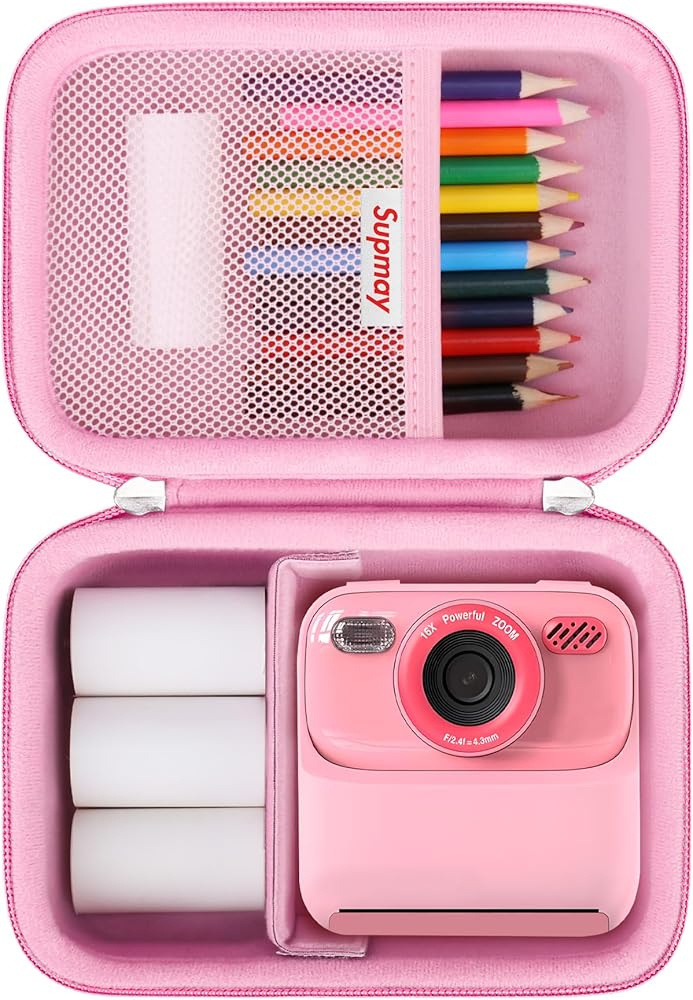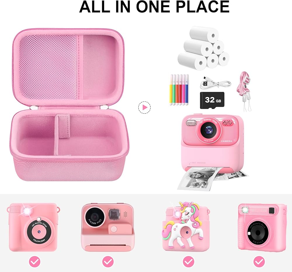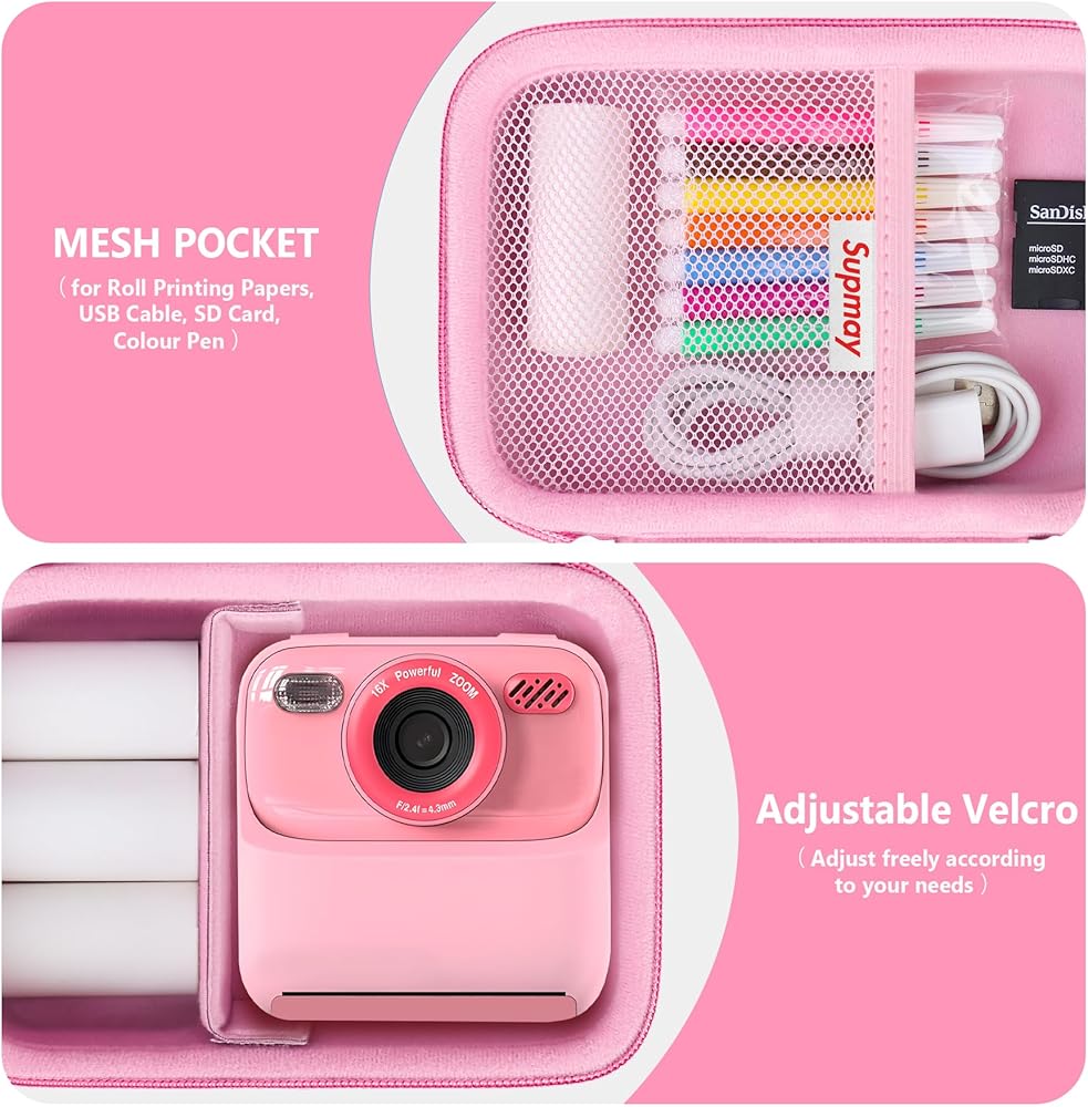PERFECT FIT: This kid camera case is designed for masterbee Kid Camera Instant Print Photo. Which is perfect fit kids instant print camera, printer paper, charging cable, micro SD card, colour pen and other small accessories, store everything you need. It is compatible with most children's cameras, such as: for Dylanto/ for ESOXOFFORE/ for ENERHAMP/ for Careenoah/ for YEEHAO and other children's cameras. For sale is CASE ONLY! (device and accessories are not included).