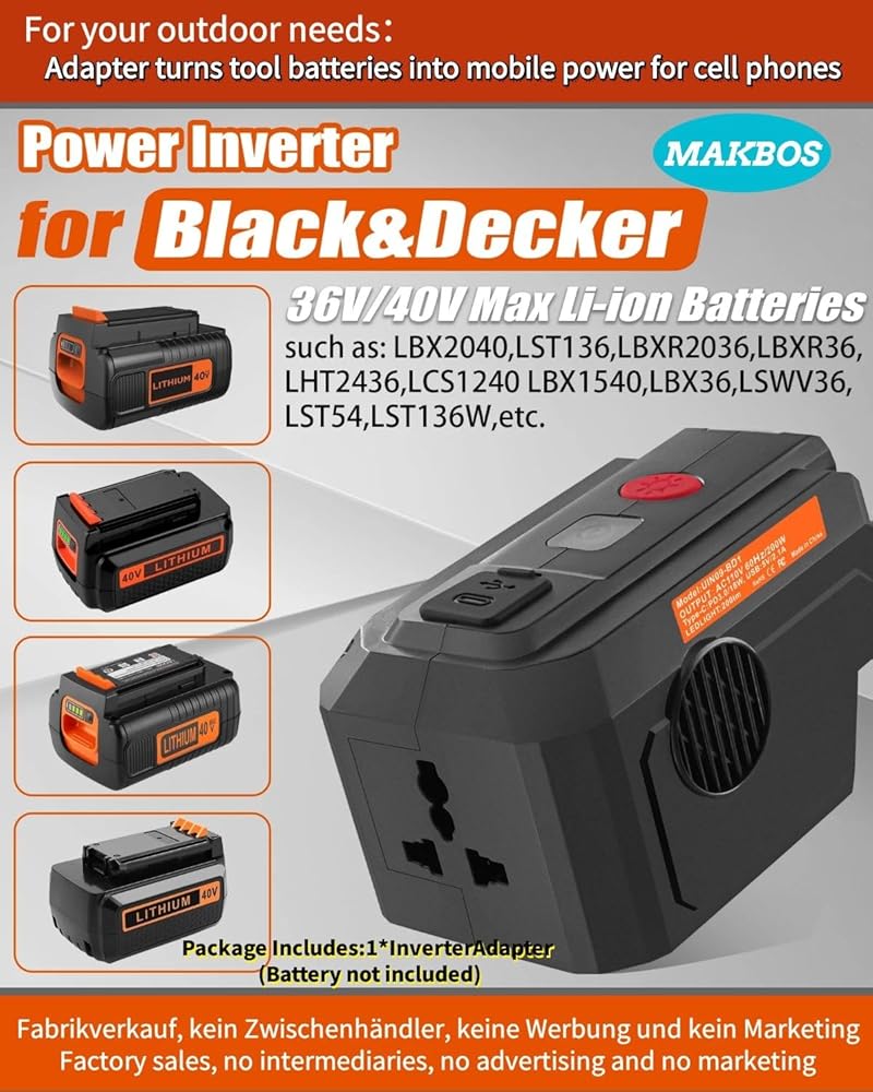 【Inverter Compatible】Suitable for Black and Decker 40V lithium battery(Not for 20V battery) , turning for Black and Decker battery into a small generator.for Black and Decker top off inverter,for Black and Decker power supply.