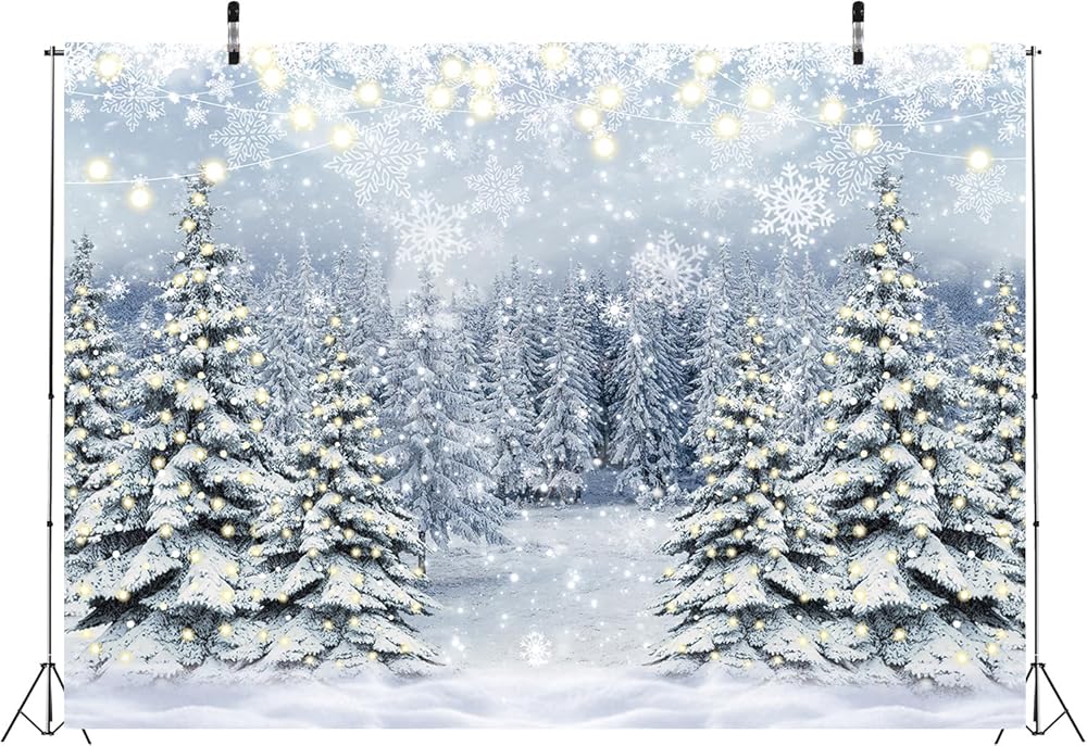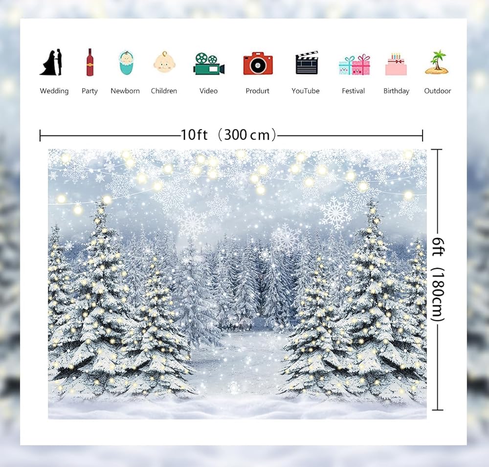 🎄🎄【Features】: Winter snow forest backdrop, high-resolution digital print, eye-catching details and bright colors. Wide enough to decorate doors, walls, etc. Impress your guests with a well-designed xmas background to make your party more festive.