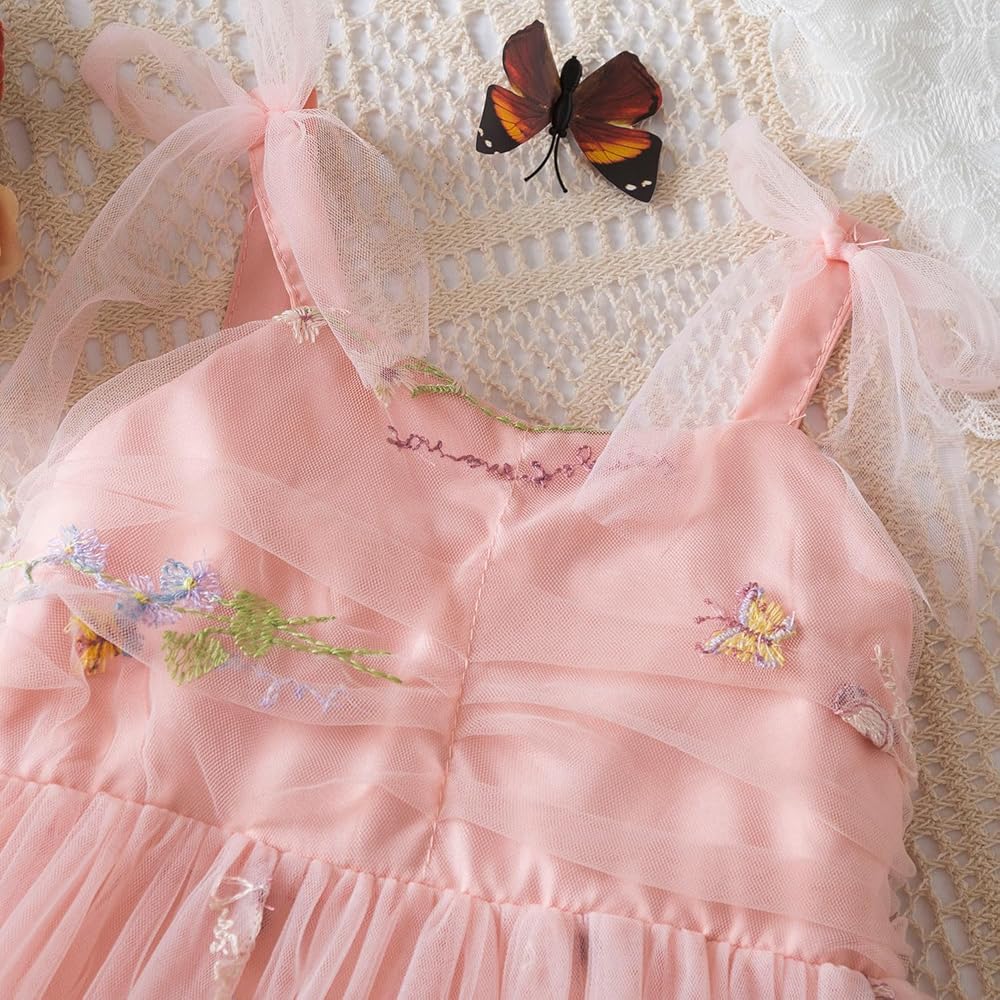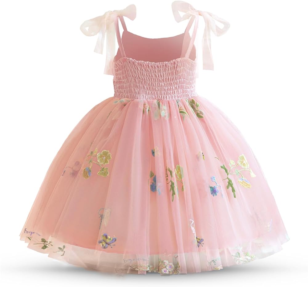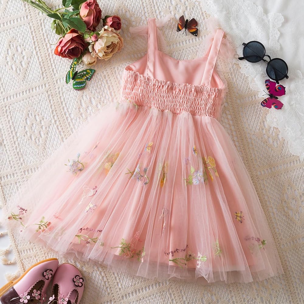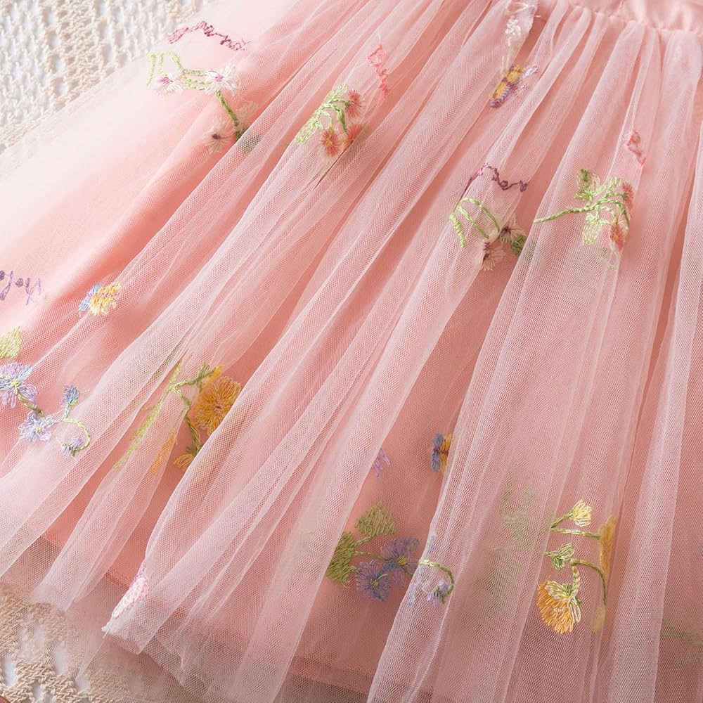 Baby girls cute summer dress,random flowers embroidery, fairy dress toddler princess tulle dress,A-line, easy to take off and pull on.