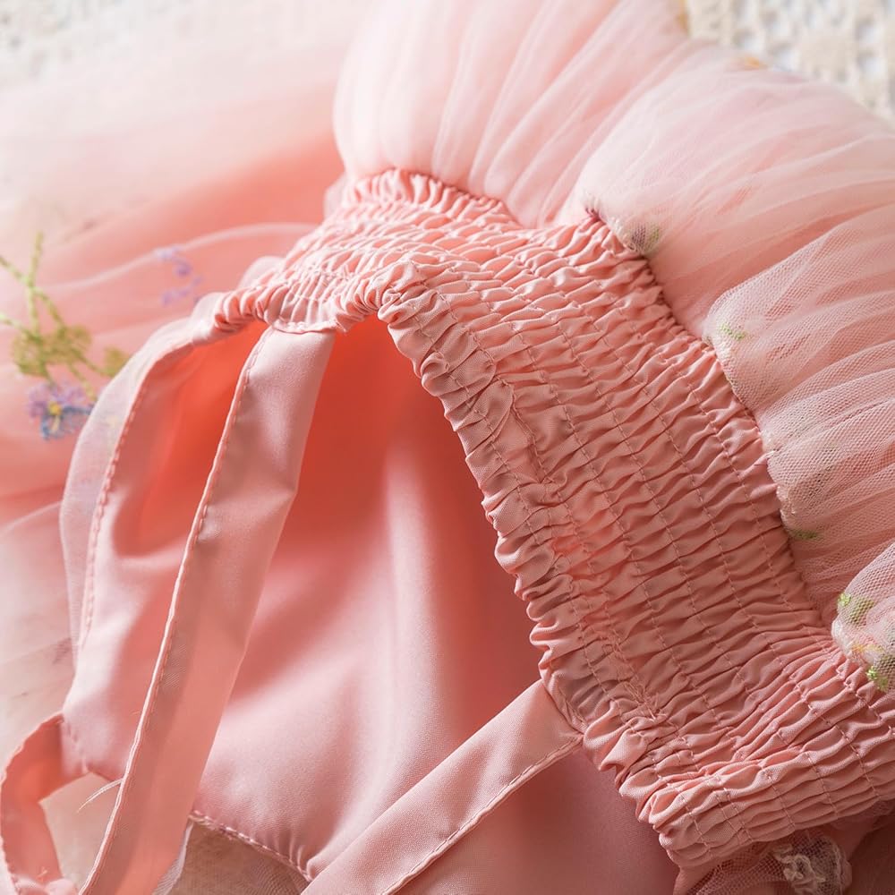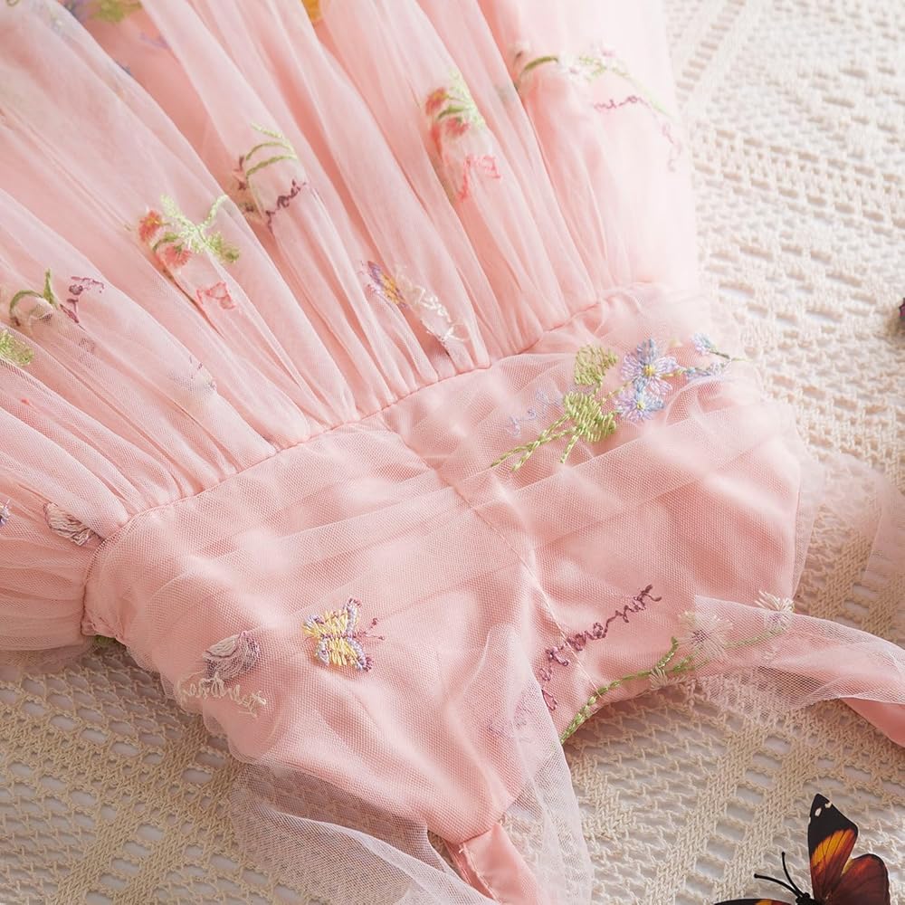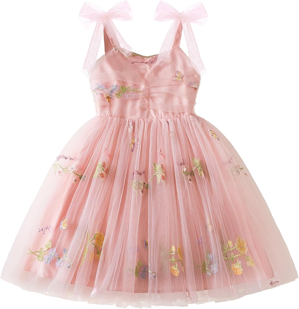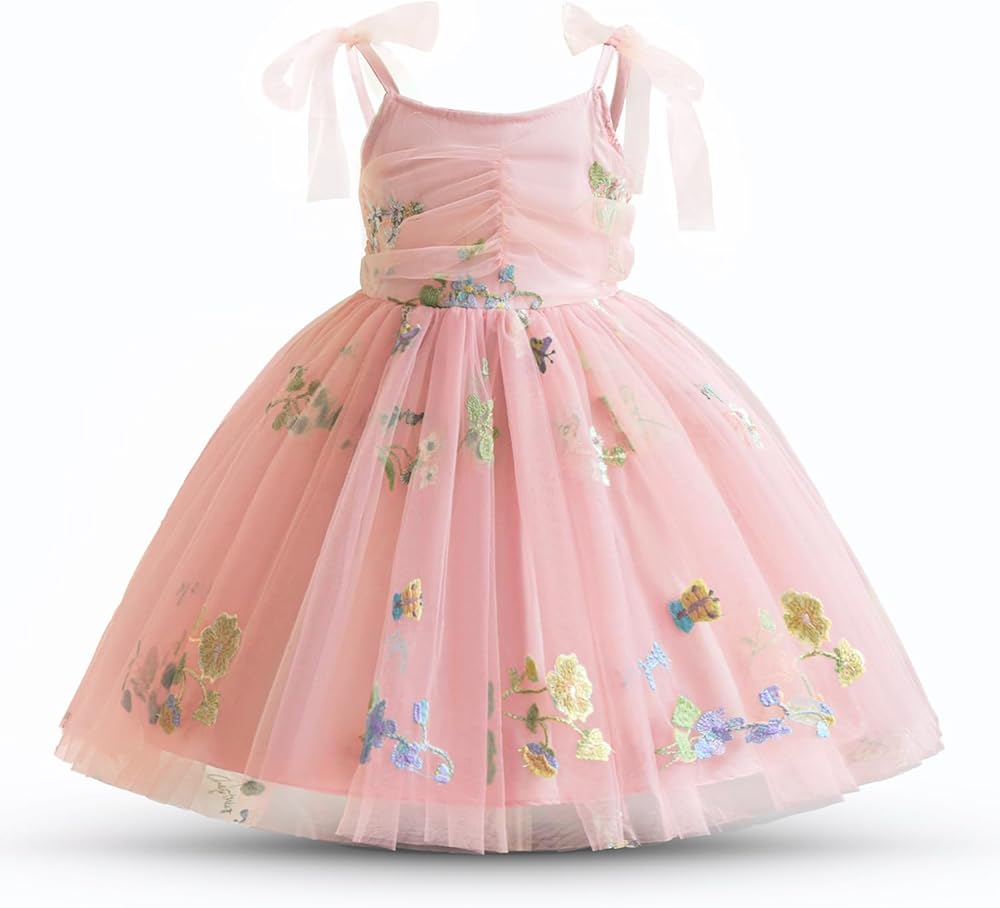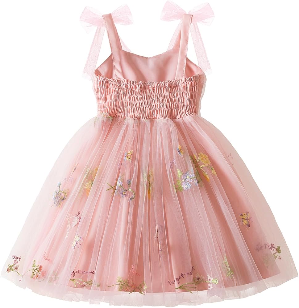 Baby girls cute summer dress,random flowers embroidery, fairy dress toddler princess tulle dress,A-line, easy to take off and pull on.