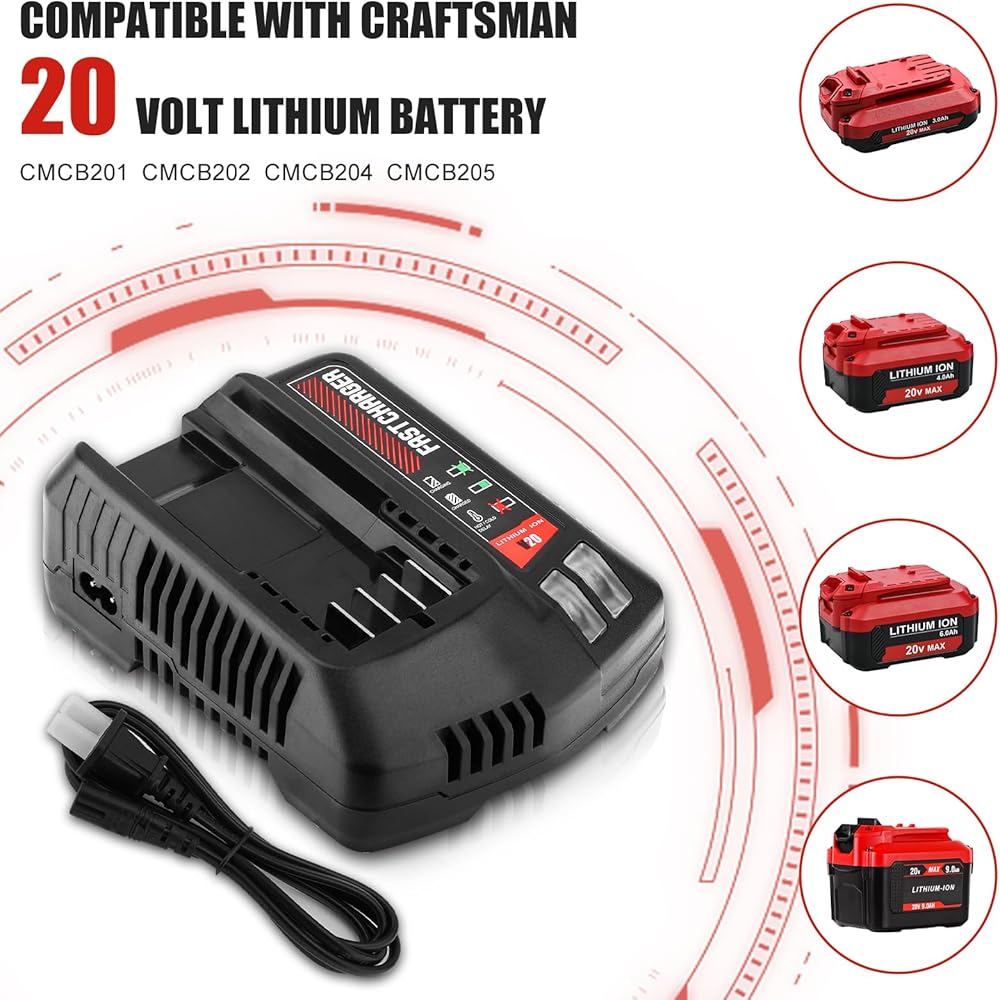 【Charger Compatibility】 Charger compatible with all CRAFTSMAN 20V Max power tool, cordless drill, chain saws, lights, blowers tools and other outdoor tool batteries.