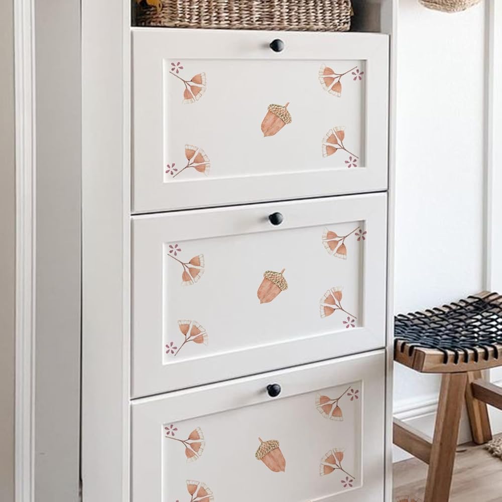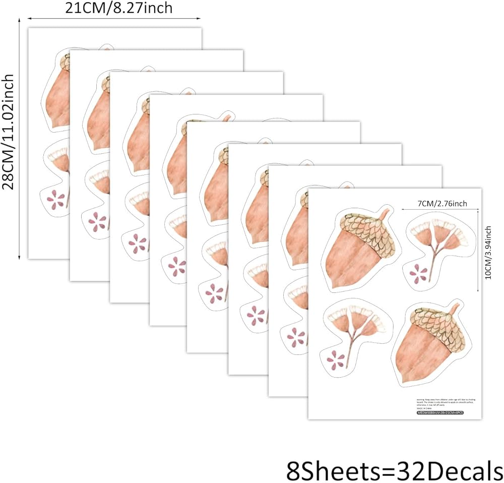 32 PCS Modern Farm Acorn Wall Decals Peel and Stick, PVC Watercolor Nursery Wall Sticker, Autumn Acorn Wall Art Decor Decal for Kids Bedroom Playroom Baby Room Classroom Decor