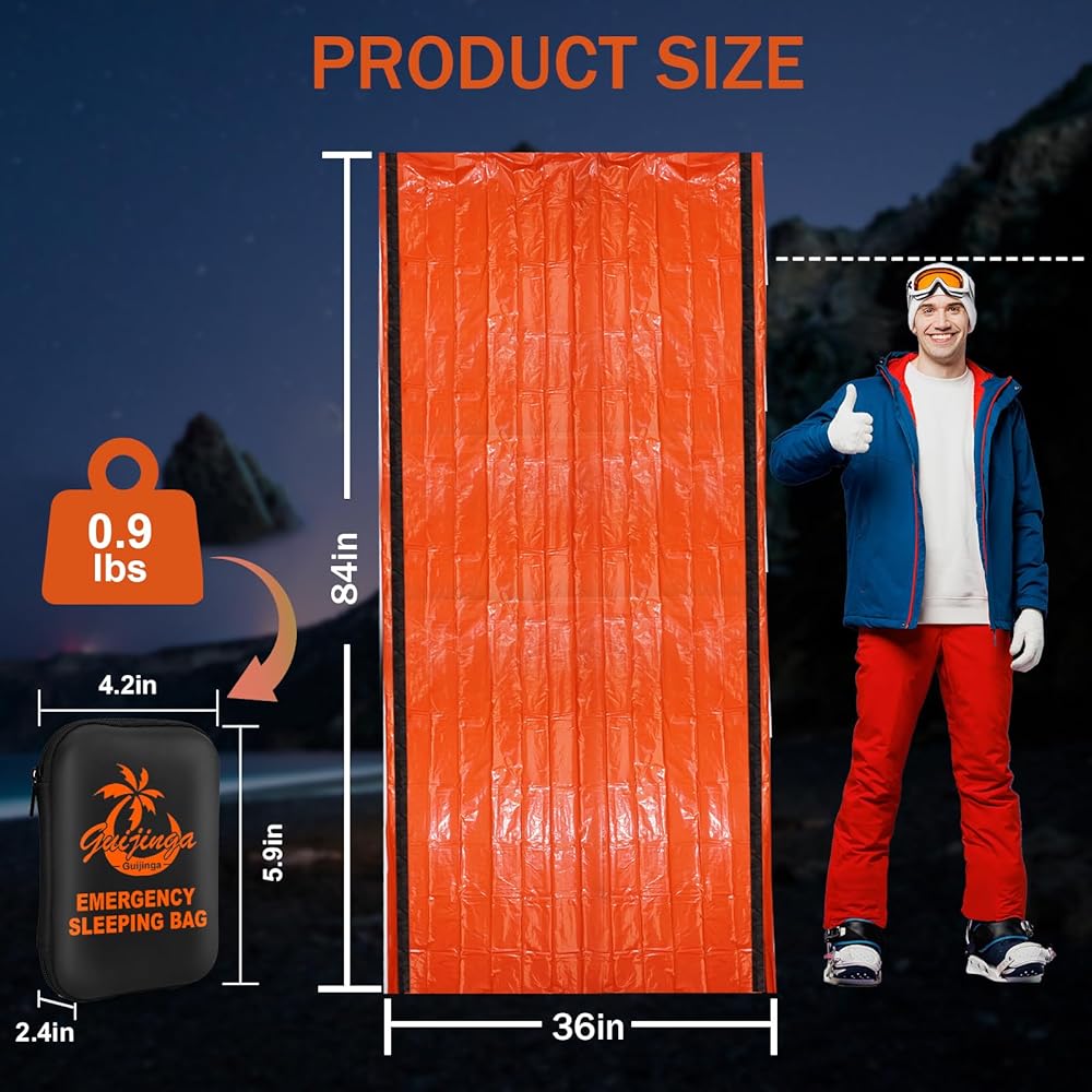 Full Body Wrap: survival sleeping bag measures 84 inches by 36 inches, providing ample space to ensure that the whole body can be comfortably wrapped in an emergency.