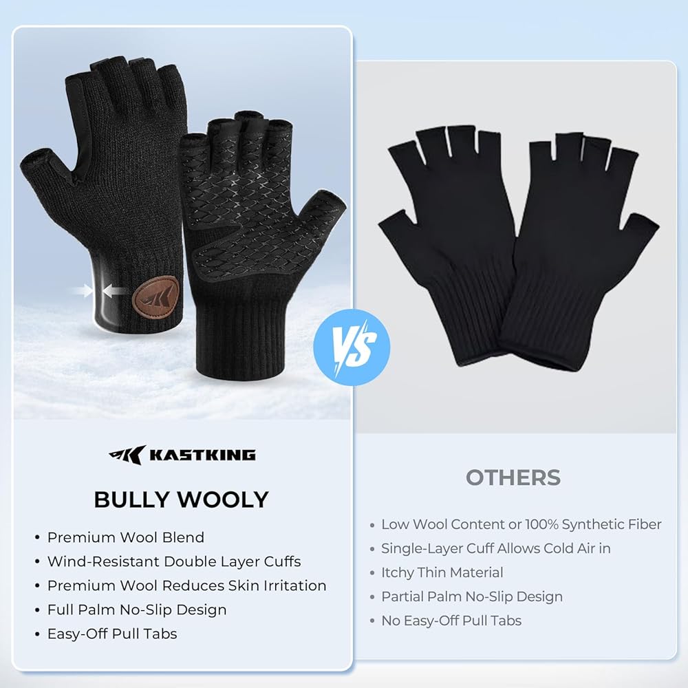 Superior Warmth: Crafted from a blend of 50% wool and 50% nylon, these warm fishing gloves offer excellent insulation. They maintain their warmth even when wet, ensuring your hands stay comfortable and functional in any conditions.