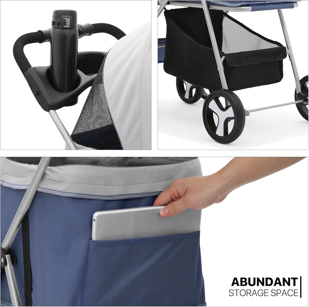 Ergonomic and Adjustable: Our pet stroller features a retractable handle that can be adjusted to various heights, providing ergonomic comfort for pet owners of all statures; This customizable design ensures a relaxed, strain-free experience while you stroll with your pet