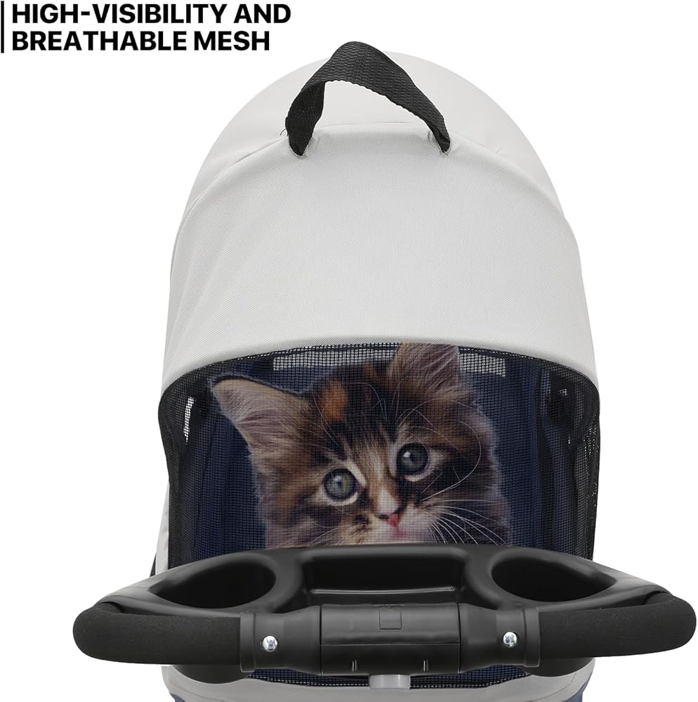 Effortless Mobility: Designed with a high-strength aluminum tube frame, our pet stroller is not only ultra-lightweight but also offers easy maneuverability with the convenience of one-handed operation, making it perfect for active pet owners on the go; Ideal for navigating through parks or urban environments