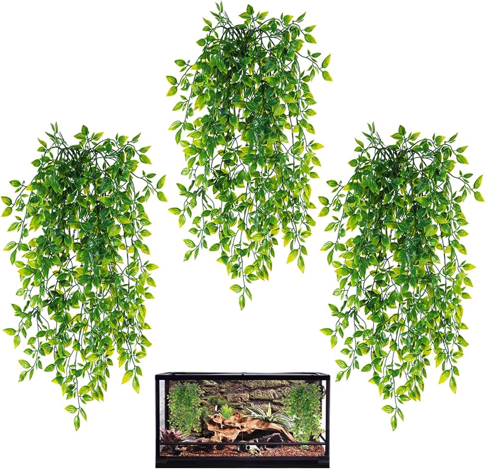 2 Pieces Plants -- The package contains two plants. The length dimension is 33.1 inches. Plants is made with non-toxic polyethylene plastic and soft silk leaves, clear texture and bright color, safe and durable, creates a fun & dynamic hiding spot and climbing for reptile amphibians.