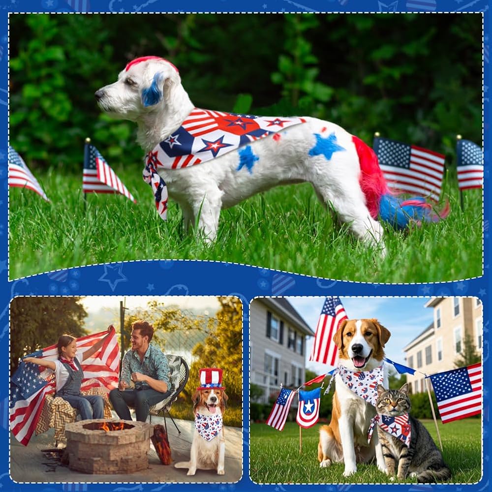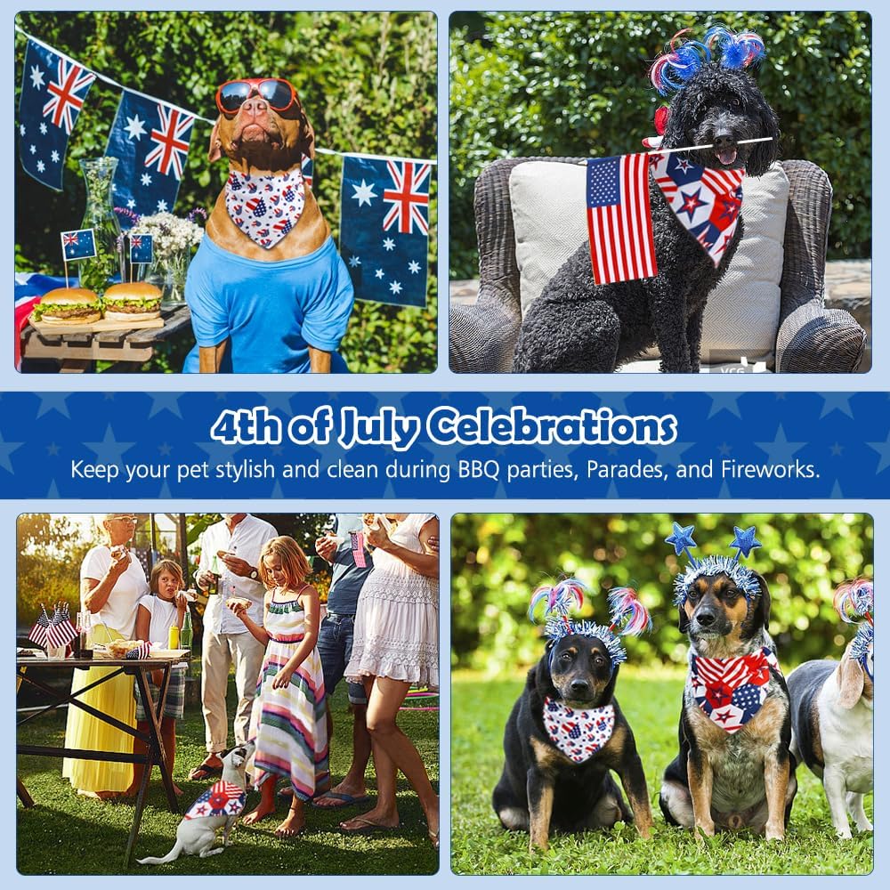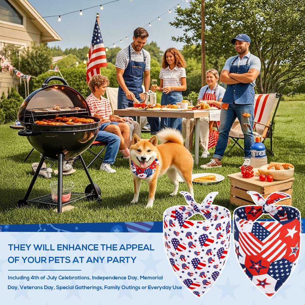 Vivifying 4th of July Dog Bandana, 2 Pack Double-Sided Triangle Patriotic Scarves with American Flag, Star & Stripes Pattern, Polyester Pet Accessories for Independence Day and Memorial Day (Large)