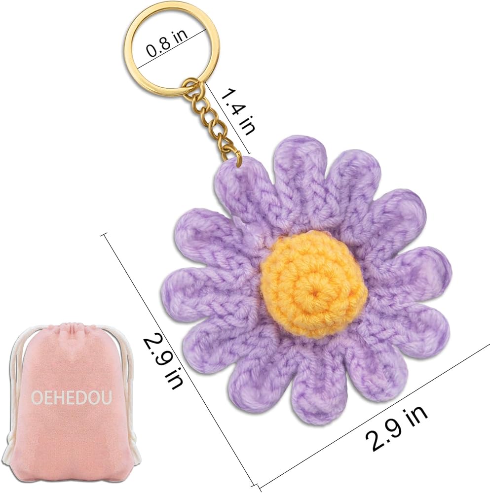 Cute Flower Decor:Add some color to any outfit using these adorable flower keychains! Each one is made using cotton yarn which makes them durable and washable if needed. Enjoy bringing some floral pieces into your everyday accessories.