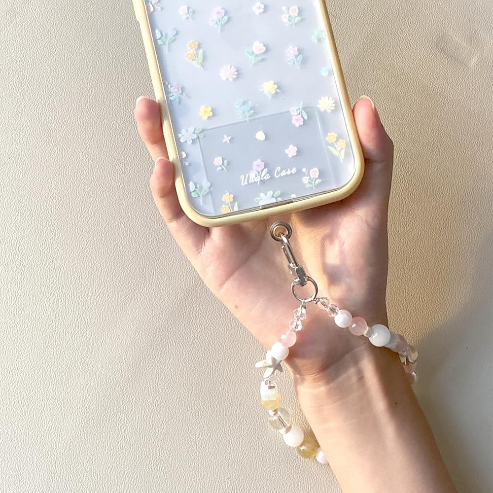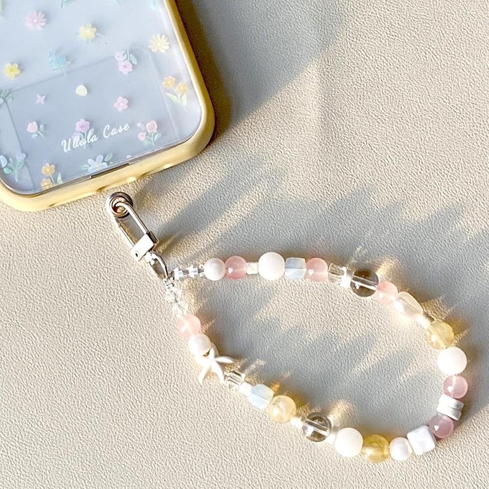 Phone Charms Strap: This Phone bracelet strap made of natural gem stones , crystal beads and faux pearls with titanium steel 360° rotating spring buckle, lightweight and durability , The beads are not fade or wear easily.