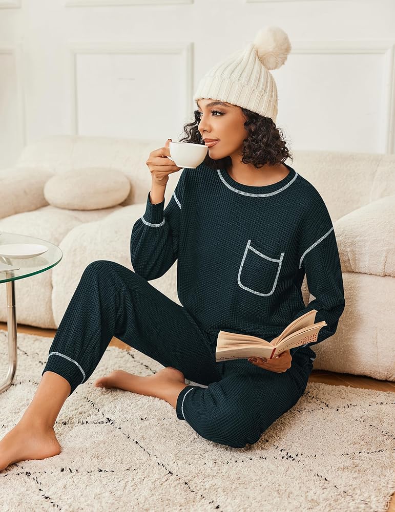 Premium Fabric: Made from high-quality waffle-knit fabric, this pajama set offers exceptional comfort and warmth, perfect for cozying up during the fall and winter seasons.