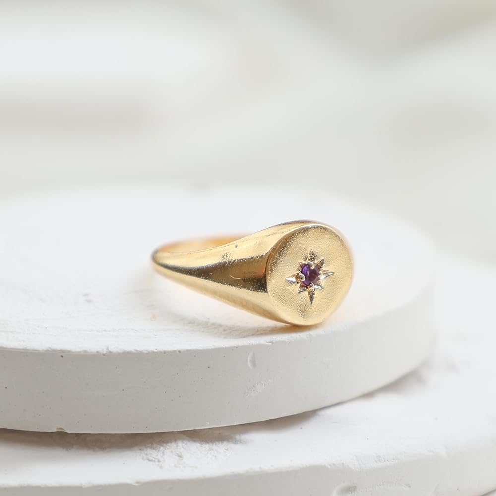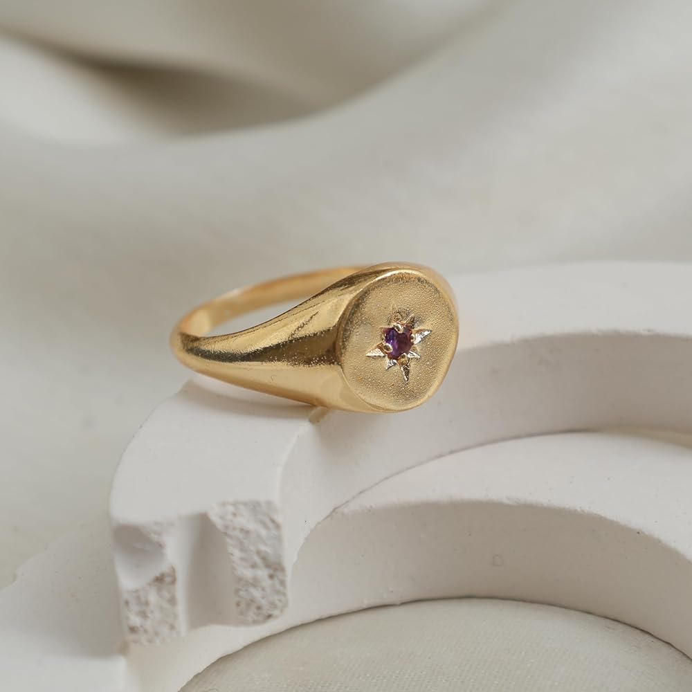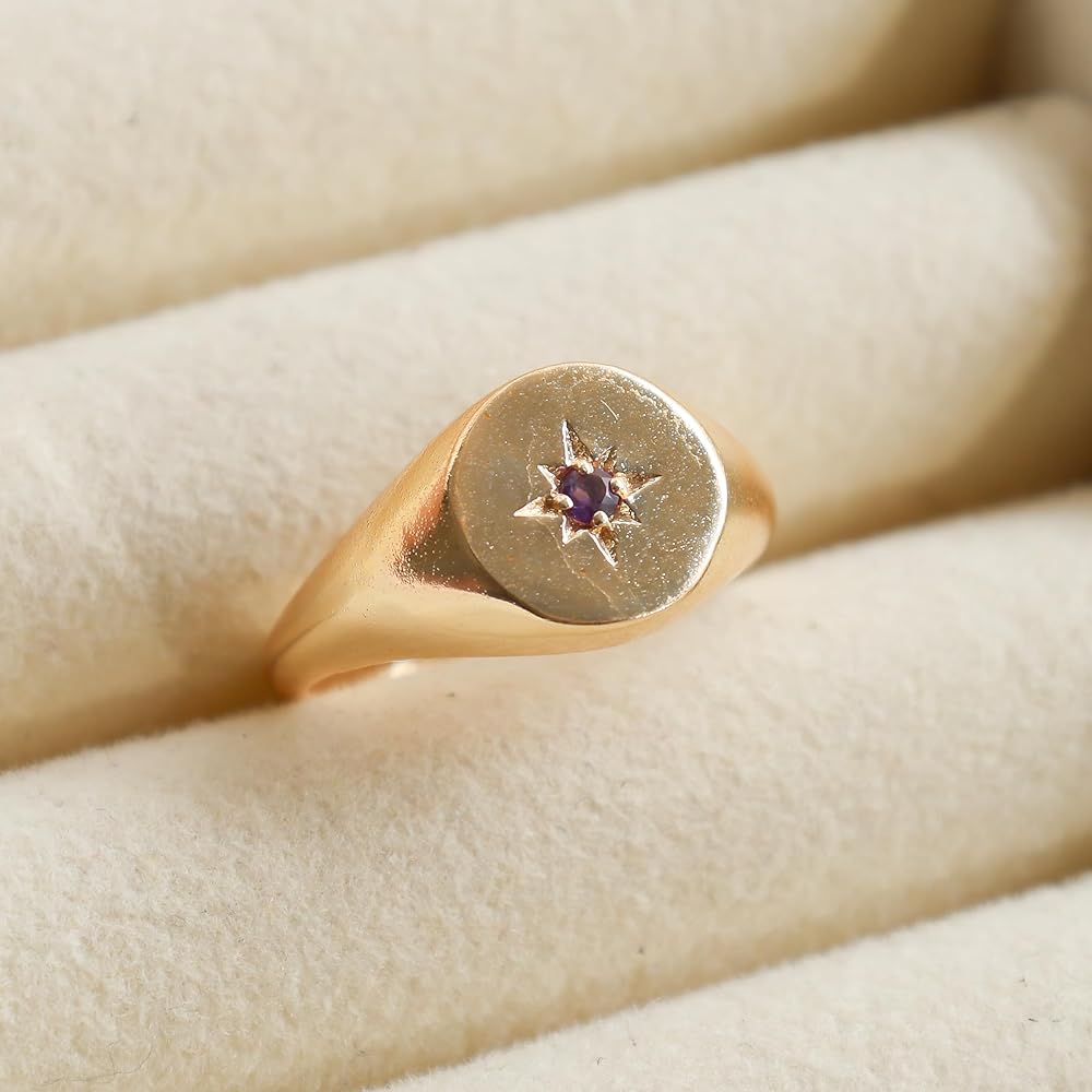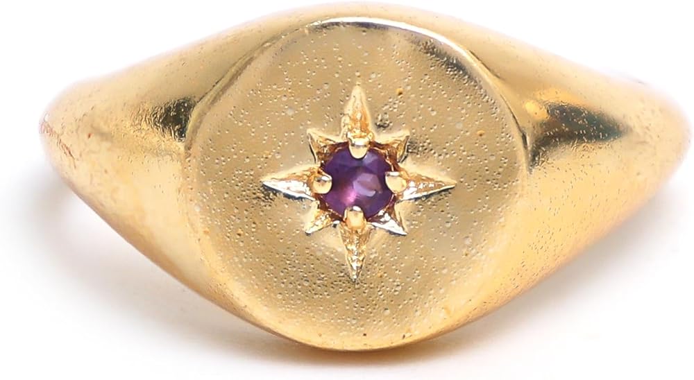 Versatile Style: Crafted with 14K gold plating, this signet ring showcases a brilliant Cubic Zirconia in a North Star design. Its lightweight yet thick band offers comfort and durability, available in US Size 8, making it ideal for everyday wear