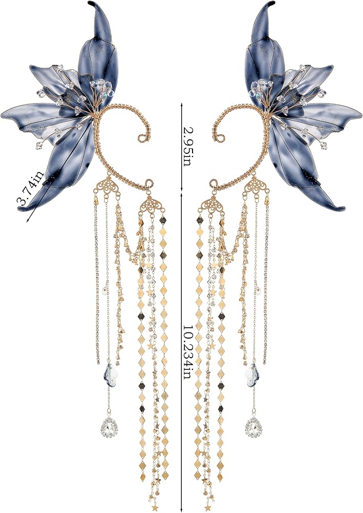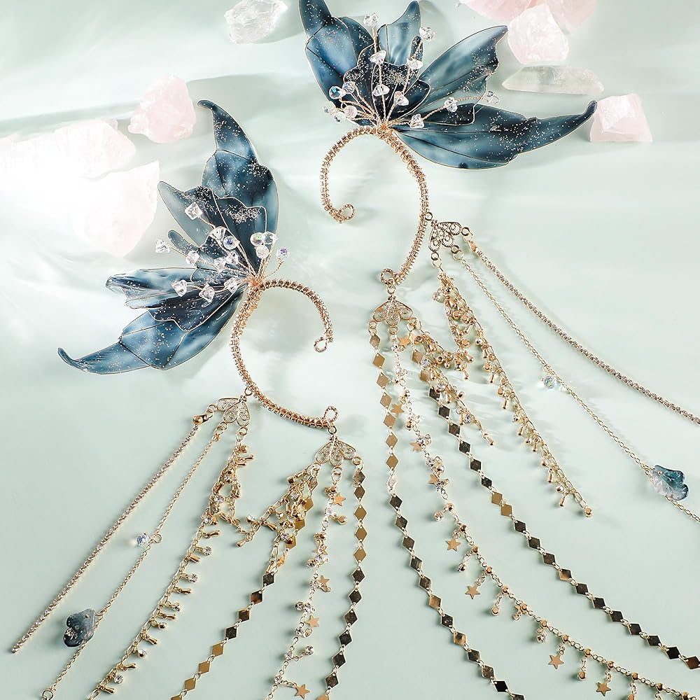 Mermaid Elf Ear Cuffs : New exquisite elf ear cuffs style, beautiful fairy wings earring shape with dreamy color mermaid fins or butterfly wings decorations. our fairy earrings Look pretty good and let you become a fairy or an elf
