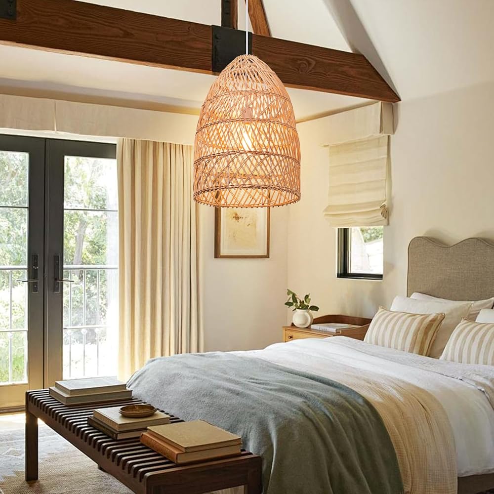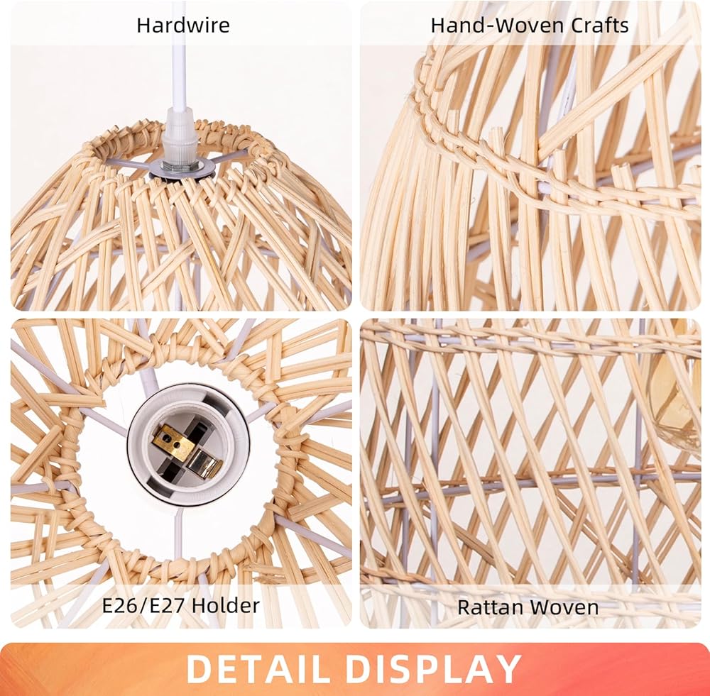 Height Adjustable: Round rattan style island lighting comes with adjustable cords to customize your lighting reference, the hanging cable length max is 78.74 inches. You can hang higher or lower (Pull through the cord to the desired length, and fix it by the set screw).