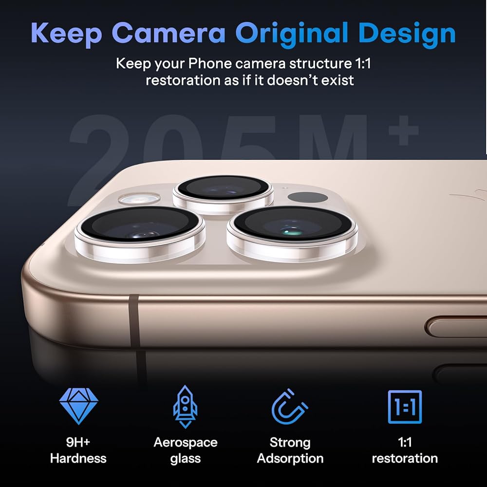 Original design: These phone camera lens protectors according to the iPhone 16 Pro Max/16 Pro camera 1:1 original design, meanwhile to keep the original color of the phone lens,almost like without lens protector after taking it on
