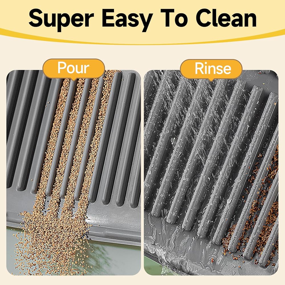 Easy Clean and Washable: PetNova's innovative single-layer groove design captures over 99% of scattered litter, making it easy to pour back into the litter box. The grooves catch the litter from your cat's paws, preventing them from stepping on it again. Plus, if you've used double-layer litter mats, you know how troublesome they can be to clean. The PetNova mat has a dirt-resistant surface that doesn't absorb odors, and it can be rinsed clean in seconds. Just shake off the water and it's ready to use again immediately.
