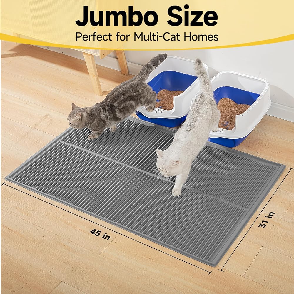 Extra Large Litter Mat: Super Easy Clean 45"x31" XL Cat Litter Trapping Mat - Raised-edges Waterproof Kitty Litter Catcher Mat Jumbo - Litter Tracking Mat for Indoor Multiple Cats