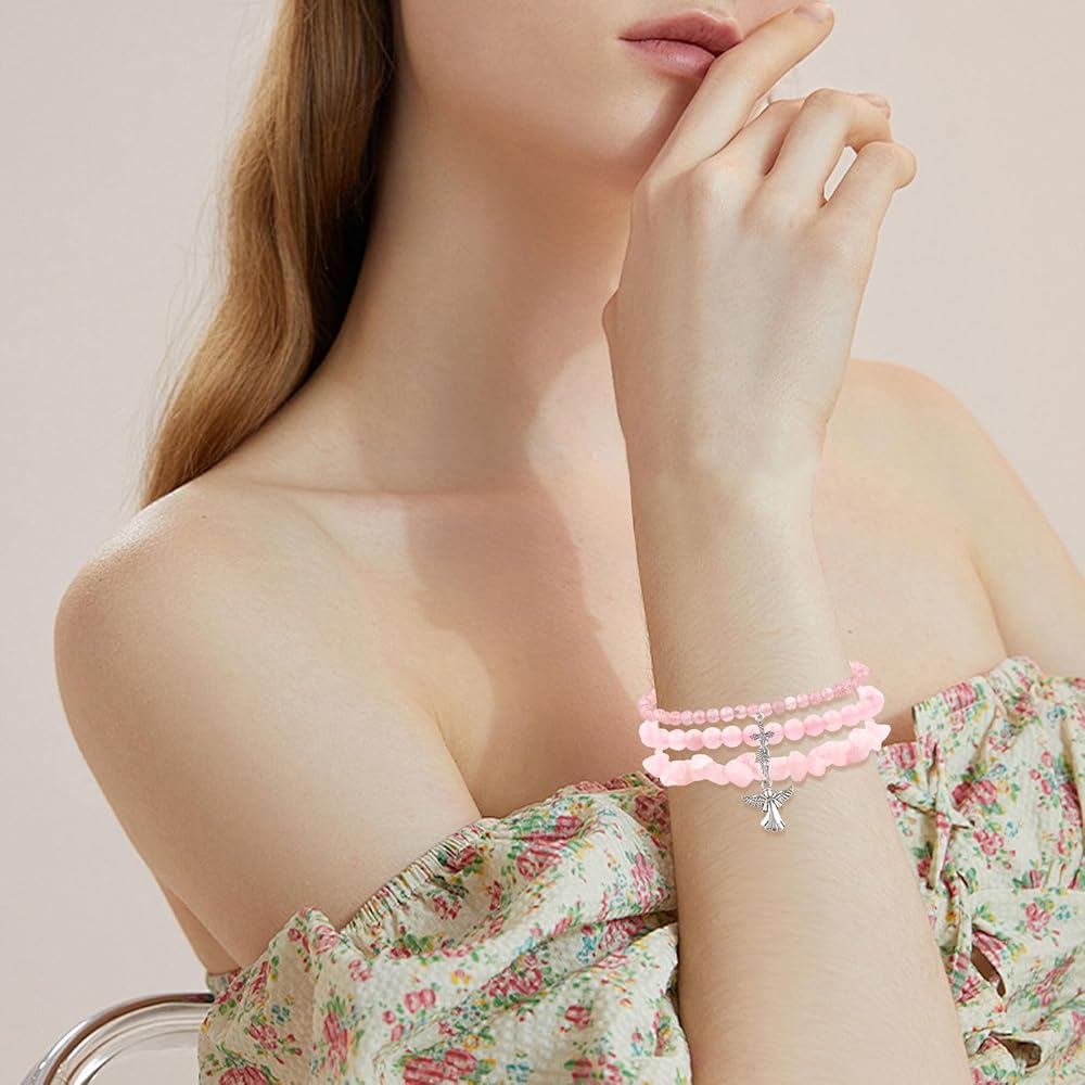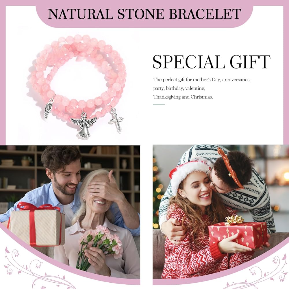 Handcrafted with Care: Each gemstone bracelet in our set is carefully handcrafted with high-quality materials, ensuring durability and longevity. The delicately crafted beads enhance the unique qualities of each stone, showcasing its mesmerizing color and texture. Each bracelet is adorned with angels, crosses, and leaf pendants