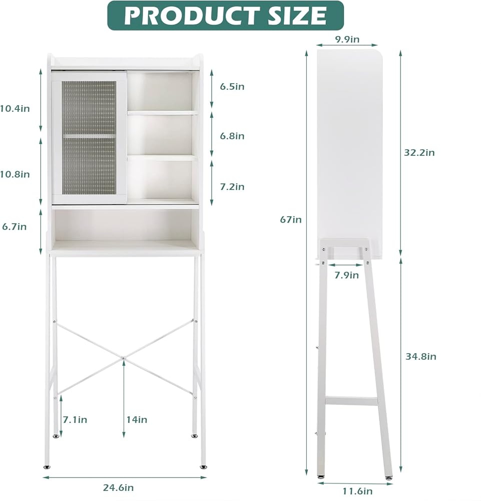 Warm Tips: Check You Right Toilet Size & To Purchase- Measures 25" L, 10" W, and 67" H. It fits over most standard toilets. Made of standard particle board with melamine coating, which makes it sturdy, waterproof, and easy to clean. Includes detailed assembly directions to make installation in a breeze. - Measures 25" L, 10" W, and 67" H. It fits over most standard toilets.