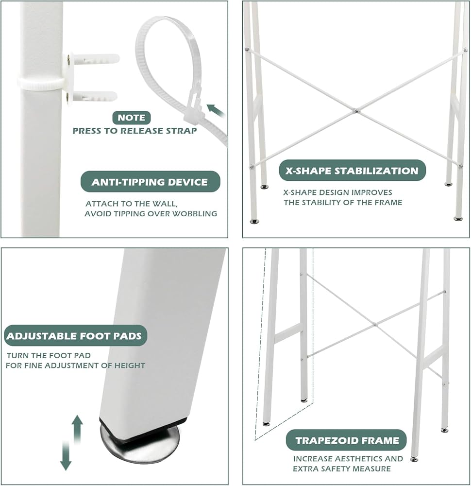 STURDY STRUCTURE- Crafted from particle board and metal frame, with trapezoid frame and X-shaped support bar. This bathroom over toilet organizer is steady, robust and maintains an open feel in your space. And the adjustable leg risers are designed for easy leveling on uneven floors and protect floors from scratches.