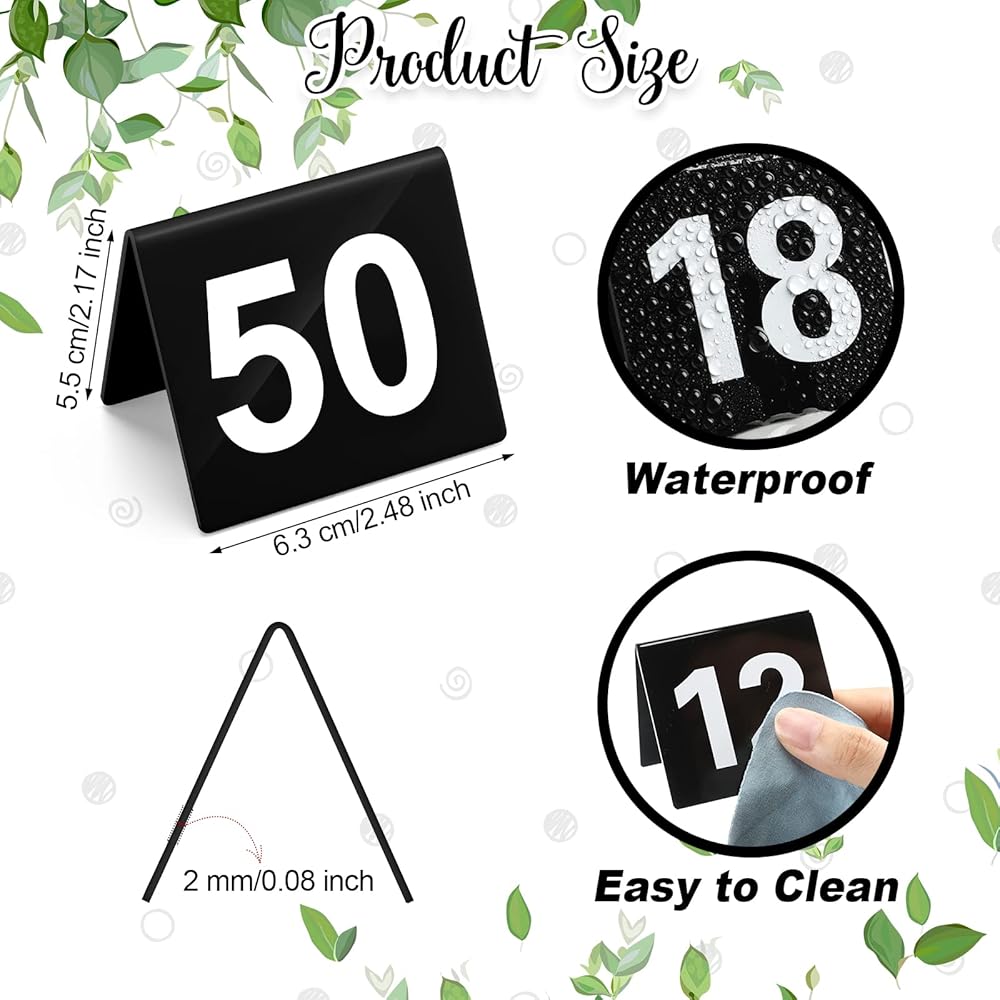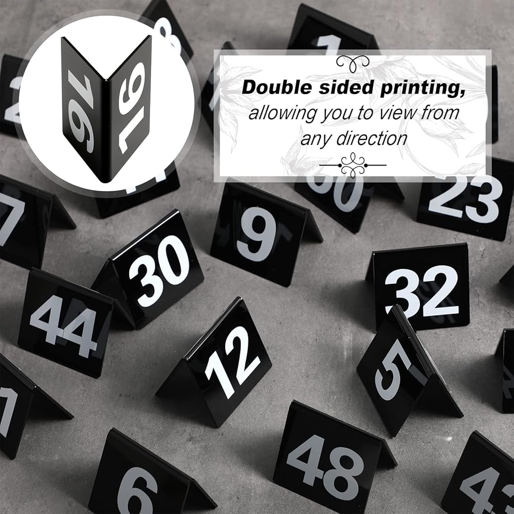 Easy to Read: acrylic table numbers feature large, black printing makes it eye catching, the slanted orientation and double sided printing offer a clear view from any direction, easy to see from a distance, smooth plastic material make it easy to clean, simply wipe clean after use