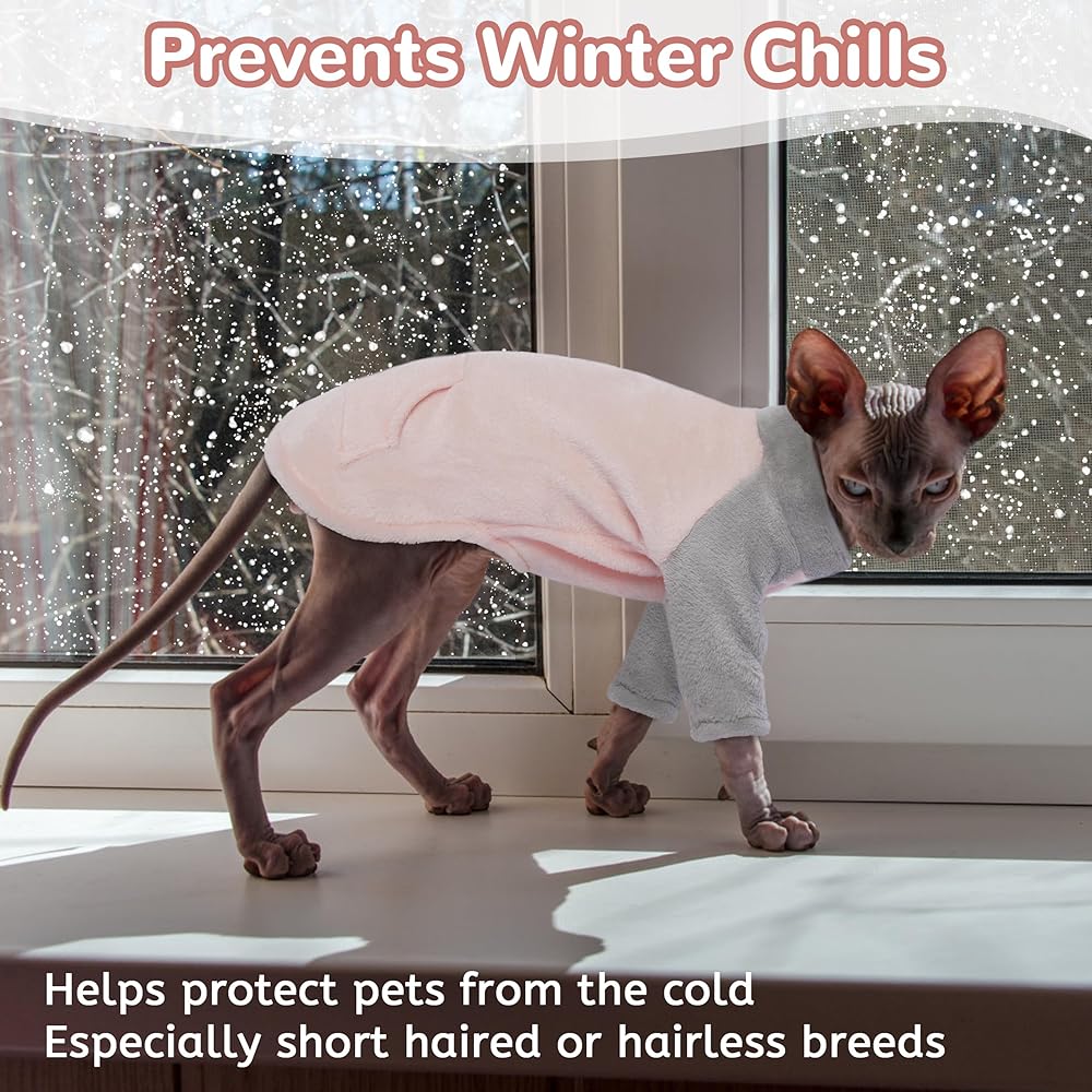 Temperature Regulation: Sphynx hairless cats do not have hair, so their skin is more sensitive to temperature changes. This sphynx cat clothes is designed for winter. It will protect your kitten from catching a cold. Perfect for Sphynx Cat, Devon Rex Cat, Cornish Rex Cat