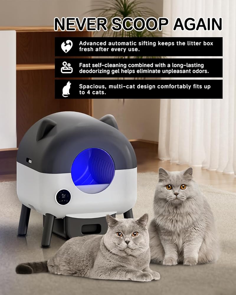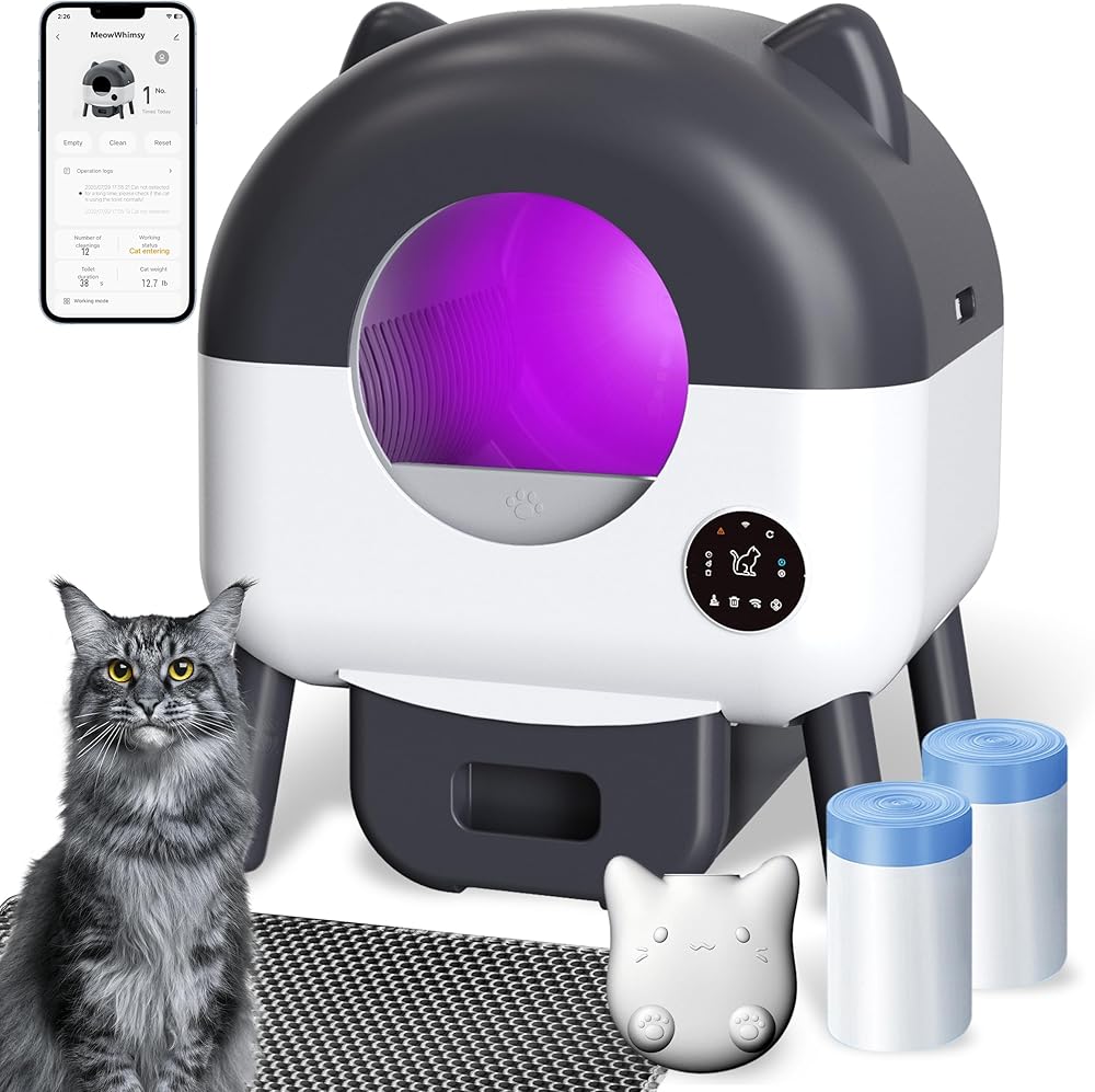 Automatic Self Cleaning Litter Box, MeowWhimsy Extra Large Automatic Cat Litter Box Self Cleaning Robot S7 for Cats, Smart Safety Sensors-App Control-Low Noise, Washable Tray,40 pcs Trash Bag