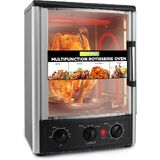 The NutriChef Vertical Countertop Rotisserie Oven is your ultimate kitchen companion for versatile and hassle-free meal preparation. With a powerful 1500W heating element, this oven excels in baking, roasting, broiling, and rotisserie cooking. The rotating kebab rack ensures perfectly cooked, delicious results every time. This oven is designed with convenience in mind, featuring adjustable time and temperature settings that allow for precise cooking. The automatic shut-off function and heat-resistant tempered glass door provide added safety and ease of use. Plus, the included accessories – rotisserie forks, skewers, two bake grill racks, a drip tray pan, and a power cable – are all stain-resistant and easy to clean. With an oven capacity of 24+ quarts and compact dimensions (13.4'' x 12.2'' x 18.9''), this appliance is perfect for any kitchen, offering efficient and energy-saving cooking solutions. Simply insert your food, set the rotary timer, and let the NutriChef oven do the rest. Save time and enjoy tasty, healthy meals effortlessly with the NutriChef Vertical Countertop Rotisserie Oven.