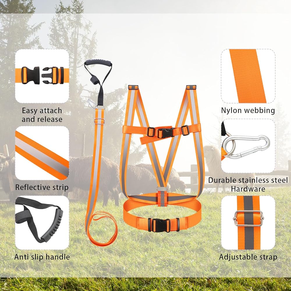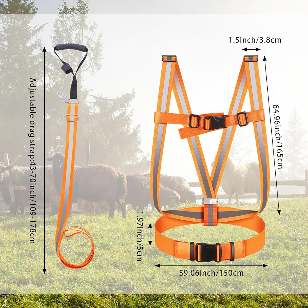 What You Get: 1 orange deer haul drag and 1 orange deer haul harness with reflective strips to meet your daily needs