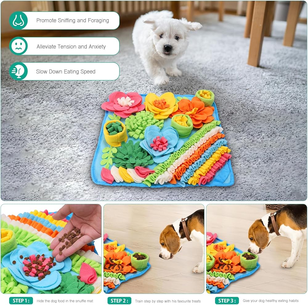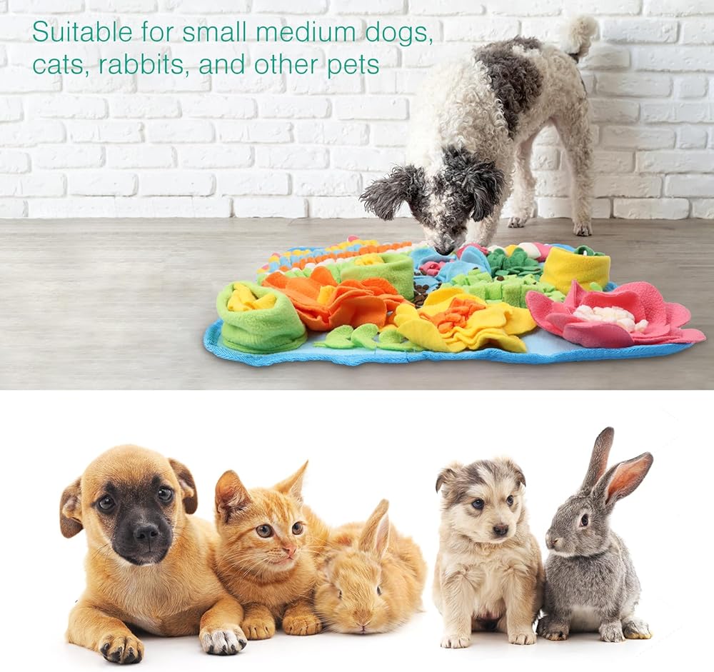 【Release Stress & Add Fun】Made of high -quality felt and soft polar wool, our interactive dog puzzle mat is safe and resistant to bite, satisfying the dog's chewing and willfulness. In addition, the bright colors and flower shapes are like being in nature, helping dogs release their irritability and restlessness.