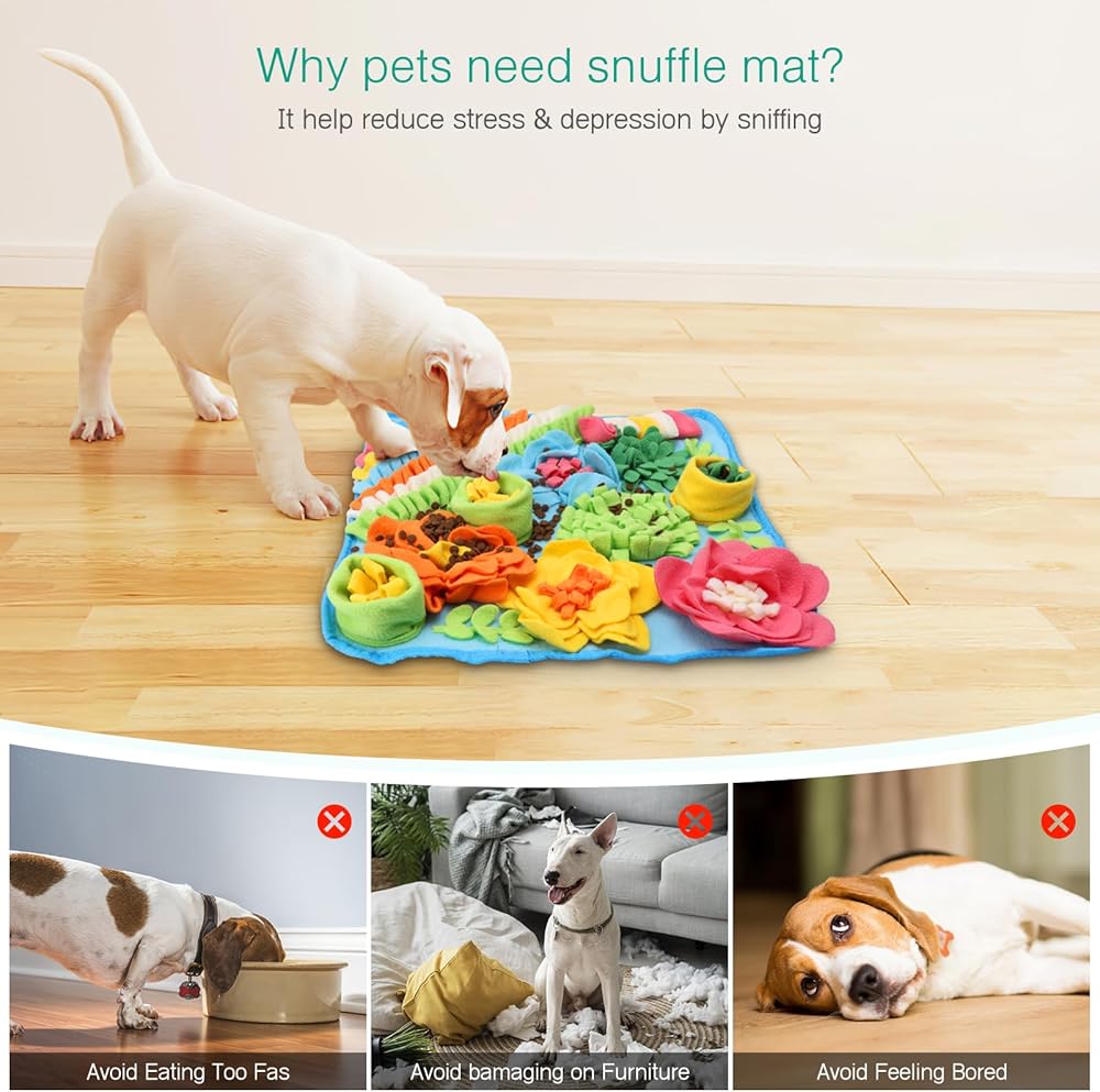 ORIA Snuffle Mat for Dogs, 15.4 x 15.4'' Slow Feeder Mat for Mental Stimulation, Foraging Training & Anxiety Relief, Interactive Puzzle Toy, Pet Foraging Mat for Small Dogs, Puppies, Cats, Rabbits