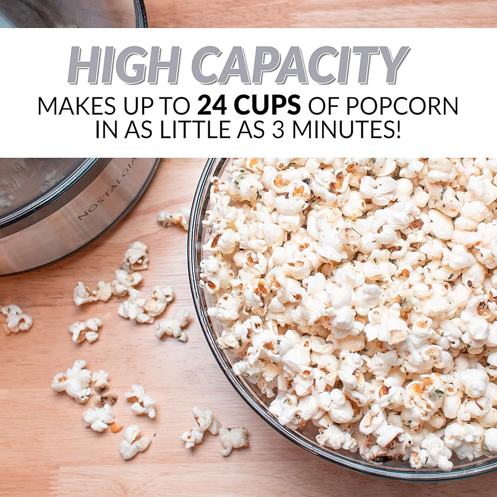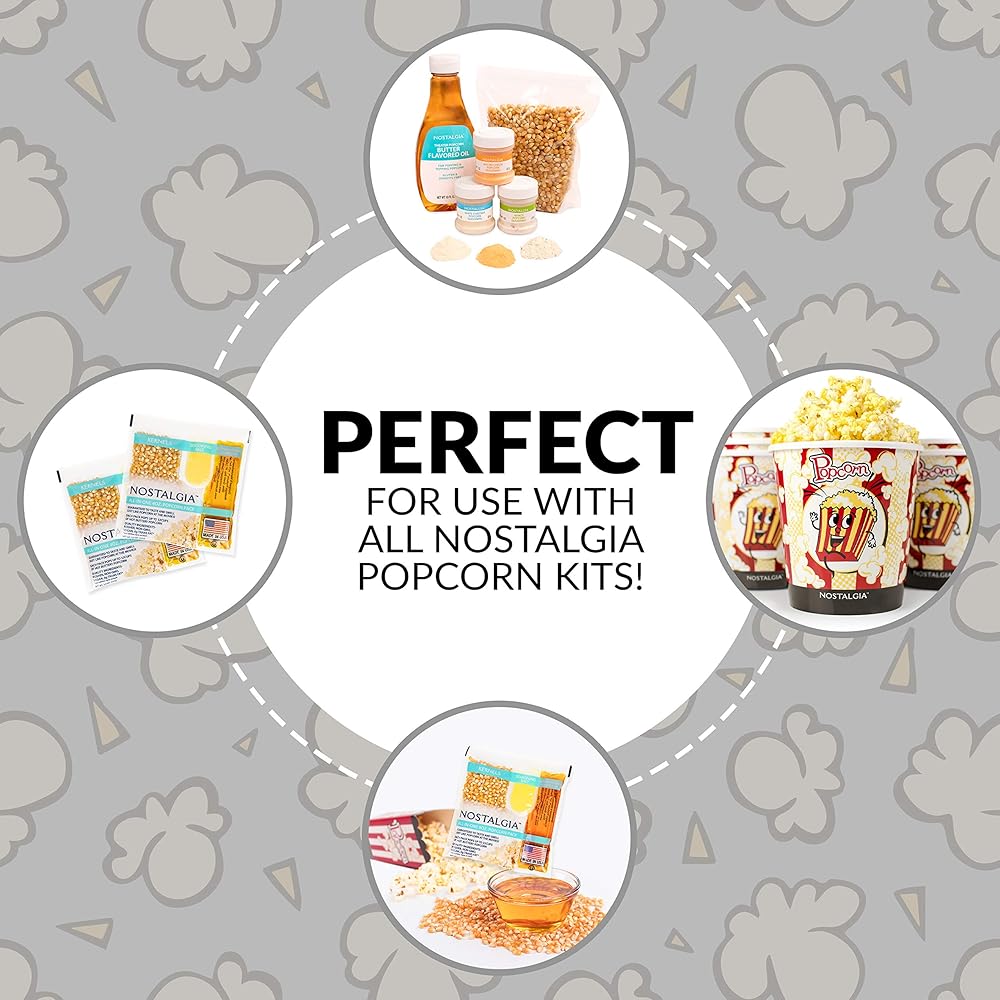 Make classic, tasty popcorn just like the movie theatre with the Nostalgia Classic Retro Stirring Electric Popcorn Maker! This popcorn machine is fun and easy to use. Simply add oil and kernels, wait for the sound of popping, and flip when the popping stops. Serving bowl, measuring cup, and oil spoon are included. Make up to 8 cups of hot, healthy popcorn for you to enjoy with your friends, family, or whoever else loves popcorn.