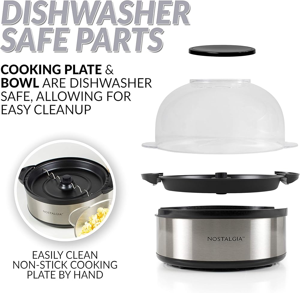 FUN & EASY: Simply add oil and kernels, turn it on, and listen for the popping of popcorn to begin. When the popping stops, flip over the bowl, add your preferred seasons, and enjoy your snack. Cool touch handles make flipping a breeze.