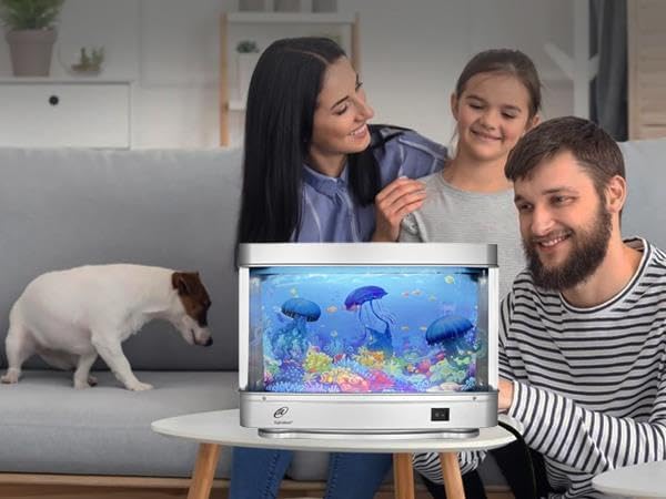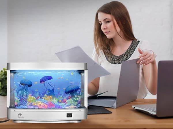 The Fascinating & mesmerizing quiet movement of realistic life like Jellyish in the tank create a beautiful Tranquil, peaceful & soothing deep-sea ambiance which could help reduce stress & anxiety. Great for children, adults & seniors with special needs, including dementia ADHD & autism. May helps improve mood & well-being.